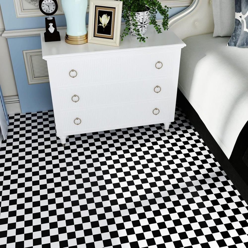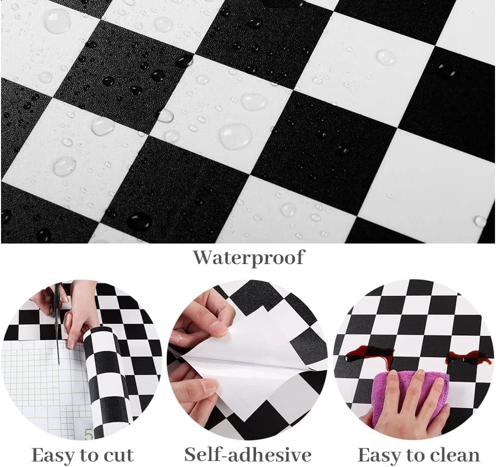 About this item Checkered Contact Paper🏁 Size & Pattern: 354"L x 32"W, total coverage in 78.46 square feet, large size opt for seamless area. Black and white checkered pattern, matte finish, thick vinyl, durable, does not tear and crease easily. Black and White Wallpaper🏁 Feature: Removable wallpaper, waterproof and oil-proof, easy to clean, wear resistance, strong adhesive, repositionable for fixing mistakes, no sticky adhesive left behind, safe for walls. Black and White Wallpaper🏁 Easy to install: Checkered wallpaper is self-adhesive, there are grid lines on the backing for precise cuts, simply peel and stick this contact paper on the surface, quick way to create a classic and modern checkered look to your space. Checkered Wallpaper🏁 Application: Black and white checkered wallpaper, suitable for kitchen cabinets, countertops, backsplash, shelf liners, drawer, locker, dresser, TV background, DIY crafts projects, nightstand, door, accent wall, backdrops, furniture, dorm, bedroom, living room, office decor, pantry areas, closet, or any smooth and flat surface. Checkered Wallpaper🏁 Tips: For best adhesive and aesthetic result, please use on a flat, dry, smooth surface; textured and rough surfaces are not recommended. Buy enough rolls at once to ensure they come from the same batch to avoid different colors. Size: 354"L x 32"W.