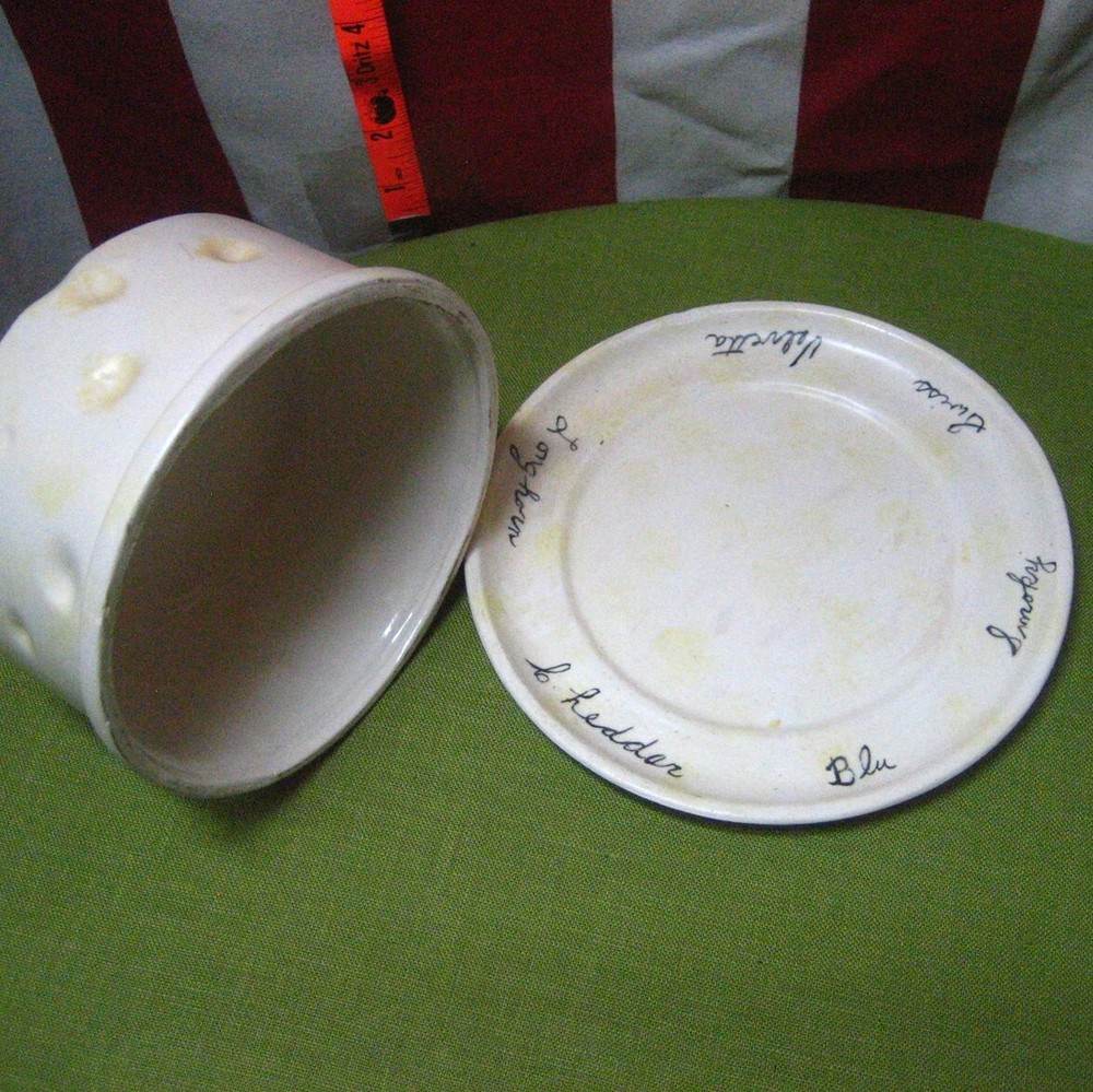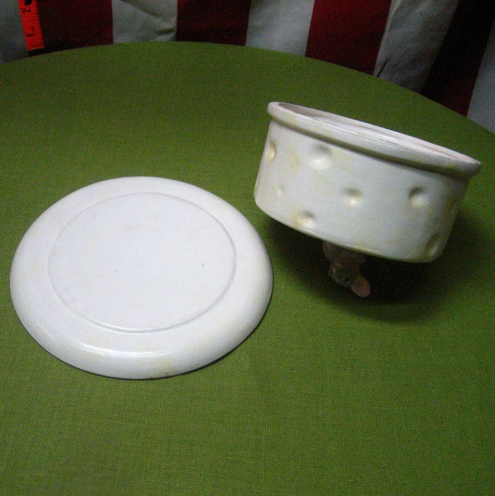 CHEESE WHEEL & MOUSE platter w/ lid dome cover Charcuterie Tray ceramic novelty This is a previously-owned, two-piece ceramic cheese tray in the shape of a large wheel of cheese, complete with mouse on top (as handle). It measures approximately 7 inches in diameter, 5 inches tall (with the mouse), and has the names of several types of cheese printed on the plate (see picture)… Powered by SixBit's eCommerce Solution