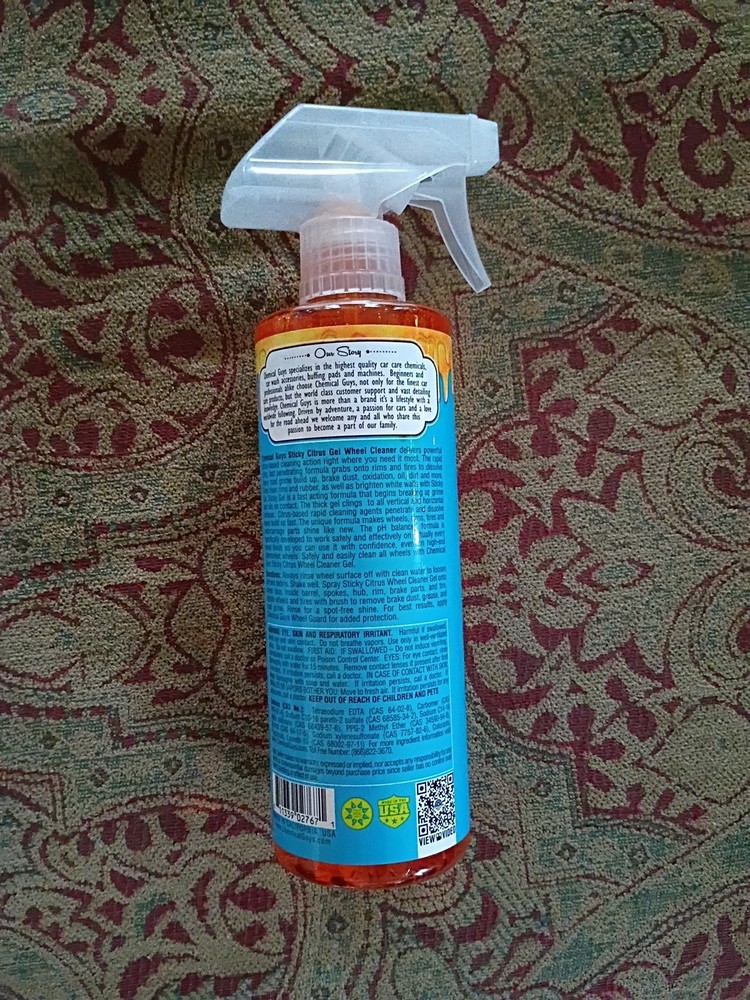 The Chemical Guys CLD10516 Sticky Citrus Gel Wheel & Rim Cleaner is a 16 oz. automotive detailing product designed to effectively clean and remove dirt, grime, and brake dust from wheels and rims. Made by the trusted brand Chemical Guys, this cleaner is specially formulated to provide a powerful cleaning action while being gentle on surfaces. The sticky citrus gel formula adheres to the wheels and rims, allowing for easy removal of tough contaminants, leaving your vehicle looking clean and refreshed. Perfect for car enthusiasts looking to maintain the appearance of their wheels and rims.