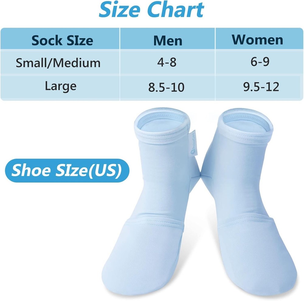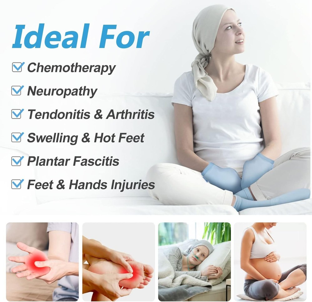 Chemo Cold Therapy Socks & Hand Ice Pack Gloves for Chemotherapy Neuropathy, Chemo Care Package for Women and Men, Plantar Fasciitis, Carpal Tunnel, Arthritis Hand Feet Pain Relief, S/M Best Gifts for Chemo Patients: Contains 1 pair of chemo ice gloves and 1 pair of cooling socks. The 280 GSM thickness cold socks come with 6 reusable gel ice packs. While the hand ice pack gloves comes with 4 gel cold pack. Professional chemo gloves and socks for chemotherapy neuropathy patients or those with arthritis, hand injuries, carpal tunnel, foot pain, plantar fasciitis and inflammation from hard work. Ice Socks for Swollen Feet: Cold socks for chemotherapy neuropathy perfectly wrap your entire foot, ensuring adequate cold treatment to relieve foot pain, hot feet, foot fatigue, plantar fasciitis, Achilles tendon tendinitis, arthritis pain, sprain or plantar strain caused by inflammation and swelling, or reduce the swelling during pregnancy. Ice Gloves for Arthritis Hands: Cold mittens for chemotherapy with dual-layer design for comprehensive protection to hands during cryotherapy. The cold gloves for chemotherapy neuropathy deliver soothing cold therapy to the hands to relieve hand, wrist and carpal tunnel pain, rheumatoid arthritis, tendinitis, inflammation and swelling caused by heavy work or during pregnancy. Sizing: Size 【Small/Medium of the chemo ice socks fits Women's shoe sizes 5 to 9.5 US & Men's shoe sizes 5 to 8.5 US】【Size Large of ice socks for feet fits Women's shoe sizes 10 to 13 US & Men's shoe sizes 9 to 12 US】. And our Our chemo cold gloves measure 6.7 x 11.2" fit most people's hands.