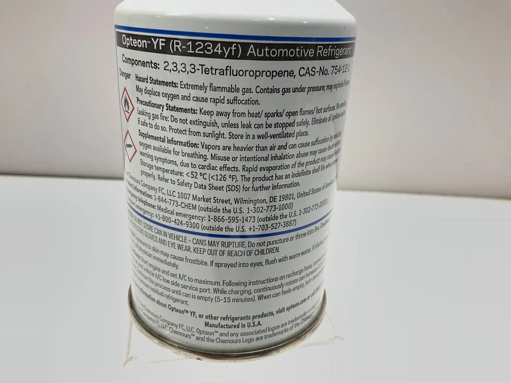 Chemours part number R-1234YF-12OZ. 12 oz can. Chemours Opteon YF, R-1234yf Refrigerant Chemours R-1234YF-12OZ Automotive A/C Refrigerant Opteon YF 12 Oz Can Packaging appearance and condition may vary. Examples include torn and distressed packaging and packaging that has been opened to verify contents. Items may contain shelf wear or imperfections due to the age of the product. Fitment: Applications are provided through literature and research and are correct to the best of our knowledge. Listed applications should be used as a guide and may fit additional vehicles. Please verify the part that you are ordering fits your application prior to purchase. Please contact us if you have any questions before purchasing. Shipping: Free Domestic Standard Shipping! Expedited shipping is available at an additional cost. Free shipping applies to continental US, Hawaii, Alaska, Puerto Rico and US territories. International shipping is available. Contact us before purchasing and we will determine the best rate. Items are shipped the next business day after receiving full payment. Returns: We gladly accept returns 30 days after purchase. Items must be returned in the condition that they were sent for a full refund.