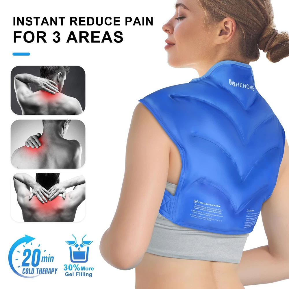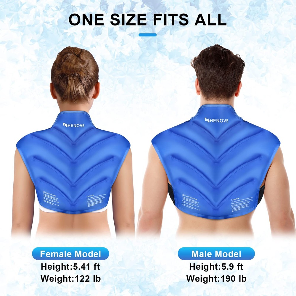 Chenove Ice Pack for Shoulders Upper Back Pain Relief with Strap, Neck and Sh... Description: Versatile and Comfortable Cold Therapy: The Chenove neck ice pack is a remarkable 3 - in - 1 cold therapy product designed for the shoulders, neck, and upper back. With its adjustable straps, it offers a customized and comfortable fit, adapting to different body shapes. It's perfect for post, exercise recovery or just a soothing cold treatment during your daily routine More Gel, Longer Lasting Cold: This ice pack upper back features a widened 19.2 × 16'' back area and is filled with 30 % more gel than regular ice packs. This extra gel ensures a longer lasting cold effect, so you can enjoy extended cold therapy sessions without having to refreeze it too often Innovative Dual Sided Fabric: The ice pack for neck and shoulders has an innovative dual fabric design. The plush side offers maximum comfort, making it easy to get used to the cold. The silky nylon side, on the other hand, allows for a deeper cold experience. You can choose the side that suits your preference at any time Hands Free and Secure: With two straps, this upper back ice pack allows you to wear it while doing various tasks. No matter where you are, at home, in the office, or even during the trip, this ice pack offers a convenient and hands free cold therapy solution. The straps keep the reusable gel ice pack firmly in place, providing a continuous cold treatment for your shoulders, back, and neck. Say goodbye to the hassle of holding an ice pack and hello to a more comfortable, pain free life Flexible When Frozen and Easy to Store: Filled with a low freezing point gel (-4 ℉), this ice pack remains flexible even when frozen, adapting well to the curves of your body. Its double sealed structure ensures it's leak proof. Plus, it comes with a protective bag for easy storage in the freezer