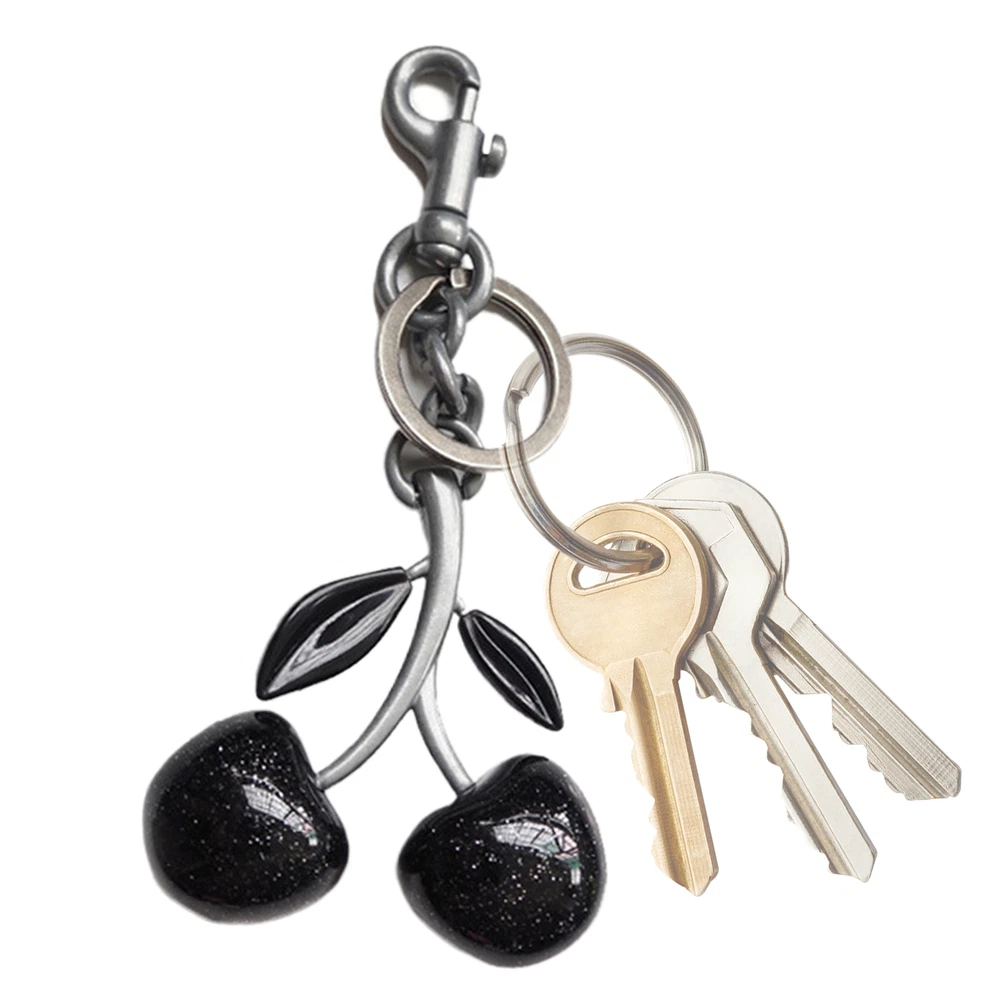 Cherry Bag Charm KeyChain Glitter resin and metal Brass Black cherry Bullet Points: High-End Appeal: Experience a captivating feel with the stunning Cherry Keychain. Its unique and beautiful black cherry design sets it apart, making it a high-end fashion accessory that exudes a unique, mysterious aura. High-Grade Durability: With an emphasis on outstanding longevity, this cherry keychain is meticulously crafted to resist wear and tear, making it perfect for long-term use. The comfortable touch and resistant to fading ensure a classic accessory that will often look its best. Easily Carrying: This cherry keychain is easy to suspend on your bag, making it easy to take the key with you and avoid losing or finding the key, ensuring a reasonable solution for everyday use. Effortless Organization: Enjoy the ease of opening and closing this Cherry Keychain with its convenient lock system. Its intricate details ensure stable safety of the key while offering quick and easy access to add or remove keys. Ideal Option: For those seeking a unique and practical keychain, our Cherry Keychain is the perfect choice. Its thoughtful design makes it an excellent choice for anyone, regardless of age or gender. Our portable and practical Fruit Keychain features a cherry shape design that will surely add a touch of cuteness to your keys. Made with durability in mind, it's perfect for carrying your keys with love and care. Plus, you can easily add or remove the key from the ring. Keep your keys safe and stylish with our Fruit Keychain. Specification: Name: Cherry Keychain Material: Resin, alloy process Product Size: As shown in the picture Multi-layer electroplating color Packing List: 1* Cherry Keychain Notes: 1. Due to the different monitor and light effects, the actual color of the item might be slightly different from the color which is showed in the pictures. 2. Please forgive a slight measuring deviation due to manual measurement. On Feb 11, 2025 at 01:29:43 PST, seller added the following information: