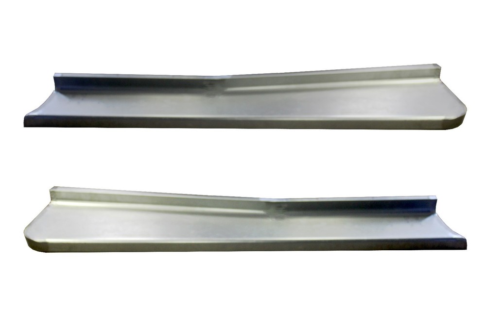 Custom made to order premium quality 1018, 16 gauge cold rolled steel set of steel running boards with adapters to fit to your original braces. Heavy gauge steel will not give way like fiberglass boards. Made from original board patterns but smoothed for hot rod look. Due to high cost of item it is MADE TO ORDER so please note handling time. Fits: 1947,1948,1949,1950,1951,1952,1953,1954 1/2 and 3/4 Ton Long Bed. Requires 1/2" spacers for 1949. Measures Overall length 74.5", front width is 9", and rear width is 7"