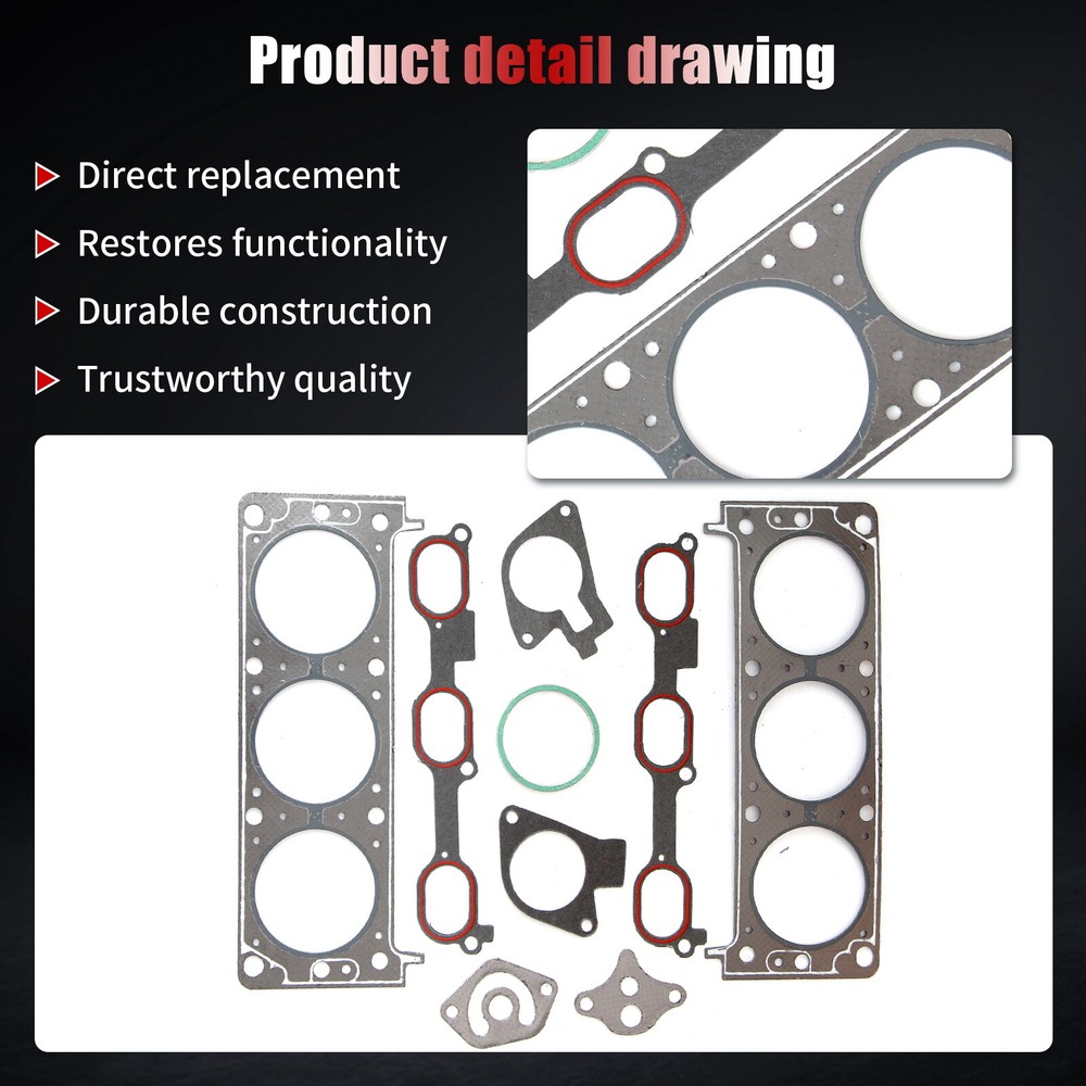 Compatibility should be checked and confirmed before placing order! Steps of confirming the compatibilities: Manage " My Garage ", and chose the right one when placing order; Or chose the " Year / Make / Model / Trim / Engine " of your vehicle on the compatible chart; Or Contact us if you have any question in confirming the compatibility, to make sure you will get the right and compatible item. Applications 2000-2003 For Buick Century Custom 3.1L 2000-2002 For Buick Century Limited 3.1L 2002-2005 For Buick Rendezvous CX 3.4L 2002-2005 For Buick Rendezvous CXL 3.4L 2000-2005 For Chevrolet Impala Base 3.4L 2000-2001 For Chevrolet Lumina Base 3.1L 2000-2004 For Chevrolet Monte Carlo LS 3.4L 2000-2000 For Chevrolet Venture Base 3.4L 2000-2005 For Chevrolet Venture LS 3.4L 2000-2005 For Chevrolet Venture LT 3.4L 2000-2005 For Chevrolet Venture Plus 3.4L 2000-2003 For Chevrolet Venture Value 3.4L 2000-2003 For Chevrolet Venture Warner 3.4L 2000-2000 For Oldsmobile Alero GL 3.4L 2000-2004 For Oldsmobile Alero GLS 3.4L 2000-2000 For Oldsmobile Alero GX 3.4L 1999-1999 For Oldsmobile Cutlass GL 3.1L 1999-1999 For Oldsmobile Cutlass GLS 3.1L 2000-2004 For Oldsmobile Silhouette GL 3.4L 2000-2004 For Oldsmobile Silhouette GLS 3.4L 2000-2004 For Oldsmobile Silhouette Premiere 3.4L 2001-2005 For Pontiac Aztek Base 3.4L 2001-2001 For Pontiac Aztek GT 3.4L Package Included Graphite head gasket Intake manifold gasket Exhaust manifold gasket Valve cover gasket Viton valve stem seals Camshaft front O-rings Other Small Gaskets Lower Gasket Set 1 Timing Chain 2 Sprockets 1 Guide Rail Water Pump (As pictures showed) ? Specifications Direct replacement - this Head Gasket Set are designed to match the original gaskets required to reseal and restore proper function on specified vehicles. Restores functionality - this Head Gasket Set are made to fit and fully restore part functionality after the original gasket fails. Durable construction - this Head Gasket Set are made from quality materials to ensure reliable performance and long service life Trustworthy quality - These Head Gasket Set are designed for the professional installer. It does not come with any installation instructions. If you do not have a service manual, please consult a professional mechanic prior to installing this kit. Purpose of Head Gasket Correct operation of the engine requires that each of these circuits do not leak or lose pressure at the junction of the engine block and the cylinder head. The head gasket is the seal that prevents these leaks and pressure losses. A leak in the Head Gasket - often called a "blown head gasket" Head gasket leaks are classified as either external or internal. External Leaks:oil or coolant on the outside of the engine (typically underneath) are visible Internal Leaks: when the fluids enter another circuit and may result in changes to the coolant or oil You will get what you see in the picture showed. About US: We are committed to making the best auto-parts products and providing you with better services. So if you have any quesiton or problem, please fell free to contact us about that. Payment: Paypal and other methods which are acceptalbe by eBay. Shipping: All item will be packed with well condition in box or envelope, we make sure the item is in good protection, also please check all the item when you get the package. Product will be shipped within 2 business days after full payment is received and verified. All domestic orders will be shipped via USPS, UPS or FedEx from our US warehouse and usually arrives to your door in about 2-7 business days. Returns & Refund: 30-day free return will be provided. -Please note that the situations below will not be incounted: -Ordered by mistake. -Don't like it. -Duplicated orders. -Damaged product during installation. Contact Us: Any quesiton or problem, do contact us please. We are always online to answer. WARNING: Cancer and Reproductive Harm - www.P65Warnings.ca.gov. End Save for Web Slices