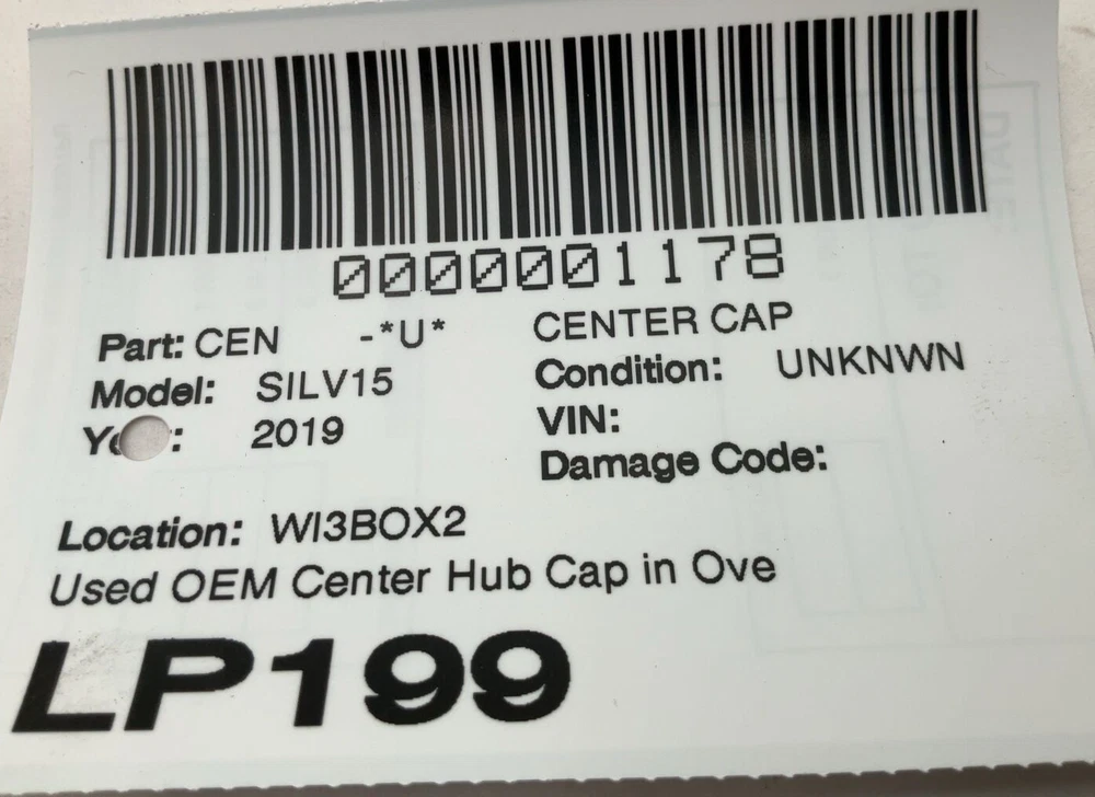 HK Auto Salvage HK Auto Salvage Montebello, CA Business Hours (PST/PDT) Mon - Fri 8am - 5pm Saturday 8am - 2pm Closed Sat & Sun Center Cap Year: 19 Model: CHEVY SILVERADO 1500 Side: Type: Used Category: Condition: Unknwn VIN: Vehicle Stock #: LP199 Part Stock #: 0000001178 Vehicle Info: Additional notes: Used Oem Center Hub Cap In Overall Good Condition With Roadwear See Pictures To Verify Interchange: Also fits: Search for more parts from this donor vehicle Search for more parts for CHEVY SILVERADO 1500 Airbag Notification If the item above is an airbag, I certify this airbag is not subject to recall and will be shipped in accordance with hazmat shipping requirements . Payment We accept credit cards through eBay Managed Payments only Sales tax collected by eBay where applicable COD available for orders placed for delivery to local businesses; please contact us prior to purchase to arrange Pay on pickup available for orders placed for local pickup Shipping We ship by FedEx, UPS, and USPS. Most items ship within 24 hours of payment; items paid for on the weekend or holidays ship on the following business day. Any free shipping we offer is for the continental United States only. If you are from Hawaii, Alaska, or a Territory of the United States, please request a shipping total before bidding and we will do our best to keep the cost low. Local delivery and local pickup options are also available. Warranty & Returns 30-day standard warranty on all general parts 90-day standard warranty on engines and transmissions Please verify fitment independently prior to purchase, as the information in the "compatibility" section above is generated by eBay Motors and not from us. If you have questions or concerns about fitment, please contact us prior to purchase. Contact Us If you have any questions regarding an eBay item, please CONTACT US via eBay messaging before you make the purchase. Please verify fitment independently prior to purchase, as the information in the "compatibility" section above is generated by eBay Motors and not from us. If you have questions or concerns about fitment, please contact us prior to purchase. After you have received your product in satisfactory condition, please leave us positive feedback. If there is a problem with your purchase, do not leave neutral or negative feedback: CONTACT US so that we can help you to resolve your issue to your satisfaction. Powered by Checkmate