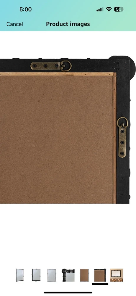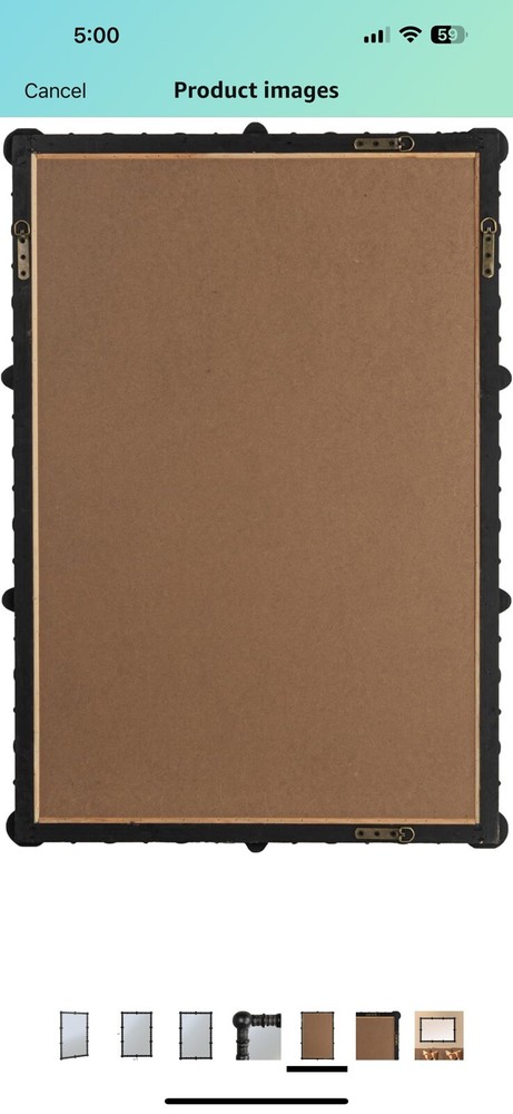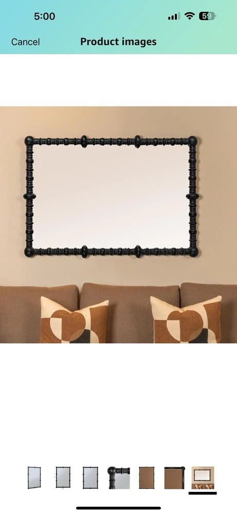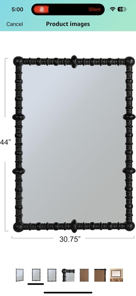 Creative Co-Op Chic Wood Beaded Dowel Frame Mirror, Black Top highlights Brand Creative Co-Op Room Type Living Room Shape Rectangular Product Dimensions 44"L x 30.75"W Frame Material Wood Style Farmhouse A captivating mirror framed by black wood beads on dowels, offering a blend of rustic charm and modern design A versatile decor piece, it complements cottagecore, farmhouse, lodge, and French country styles with its unique aesthetic A convenient hanging mechanism at the back allows for easy placement anywhere A composition of wood beads and dowels, this mirror brings a natural and handcrafted quality to any space 30.75" L x 44.0" H See less Product specifications Measurements