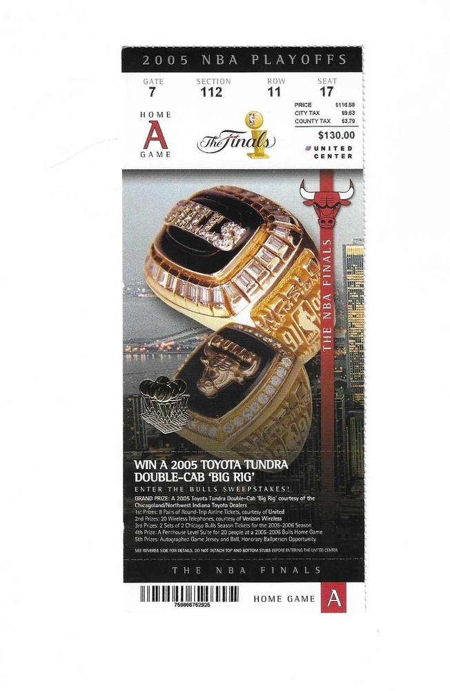 Chicago Bulls Finals Phantom Game A Playoff Basketball Ticket From 2005 Here is 1 Finals Phantom Chicago Bulls Game A Playoff Basketball Ticket from 2005. The game would have taken place at The United Center in Chicago, Illinois. The ticket is in good condition and would make an excellent addition to your collection. Payment Payment is due within 24 hours of sale. Shipping Your item will be shipped within 24 hours of receipt of payment via US Mail.