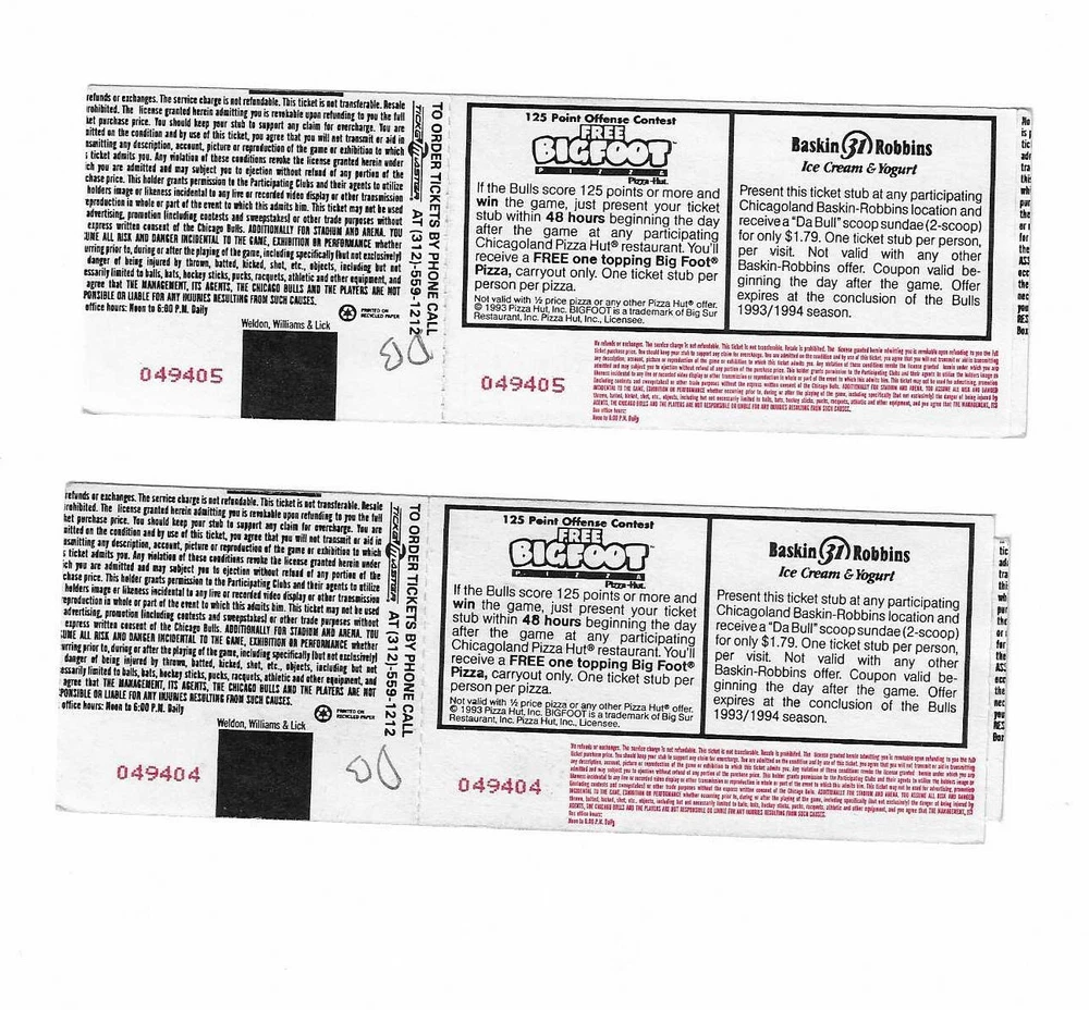 Chicago Bulls vs New York Knicks Unused Basketball Tickets From December 17, 1993 Here are 2 unused Chicago Bulls vs New York Knicks Basketball Tickets from December 17, 1993. The game took place at The Chicago Stadium in Chicago, Illinois. The tickets are in good condition and would make an excellent addition to your collection. Payment Payment is due within 24 hours of sale. Shipping Your item will be shipped within 24 hours of receipt of payment via US Mail.