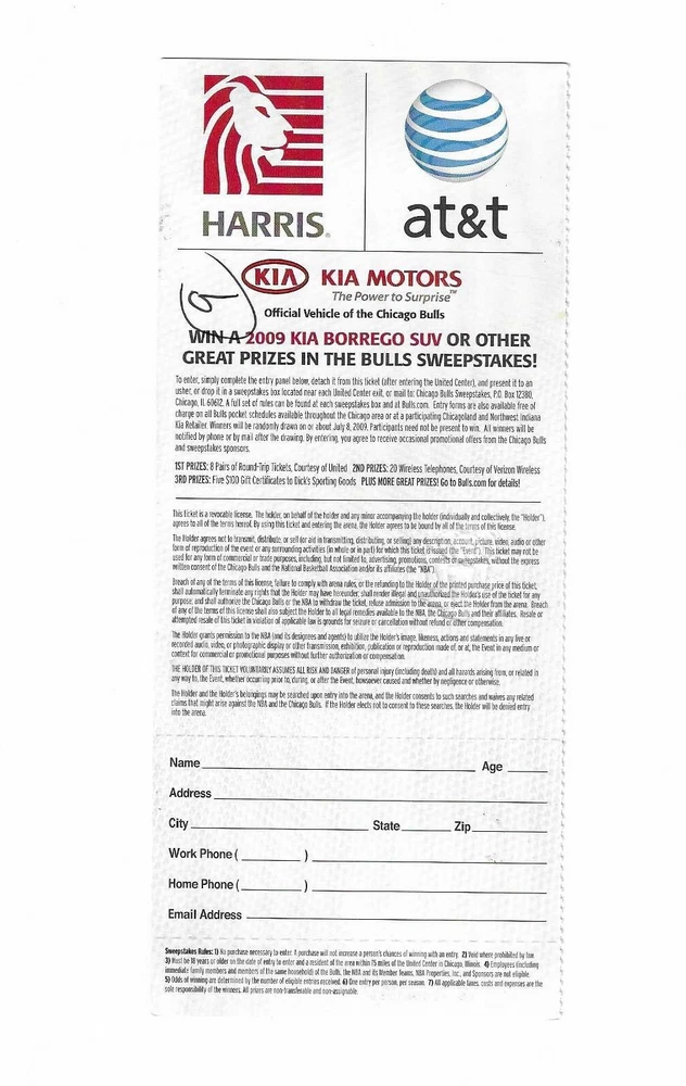 Chicago Bulls vs Oklahoma City Thunder Unused Basketball Ticket From January 10, 2009 Here is 1 unused Chicago Bulls vs Oklahoma City Thunder unused Basketball Ticket from January 10, 2009. The game took place at The United Center in Chicago, Illinois. The ticket is in good condition and would make an excellent addition to your collection. Payment Payment is due within 24 hours of sale. Shipping Your item will be shipped within 24 hours of receipt of payment via US Mail. Terms and Conditions All Sales are final. No Refunds