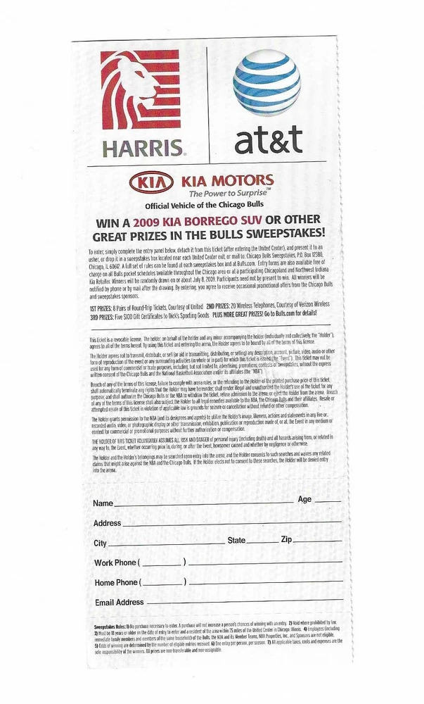 Chicago Bulls vs Philadelphia 76ers Unused Basketball Ticket From April 9, 2009 Here is 1 unused Chicago Bulls vs Philadelphia 76ers unused Basketball Ticket from April 9, 2009. The game took place at The United Center in Chicago, Illinois. The ticket is in good condition and would make an excellent addition to your collection. Payment Payment is due within 24 hours of sale. Shipping Your item will be shipped within 24 hours of receipt of payment via US Mail. Terms and Conditions All Sales are final. No Refunds