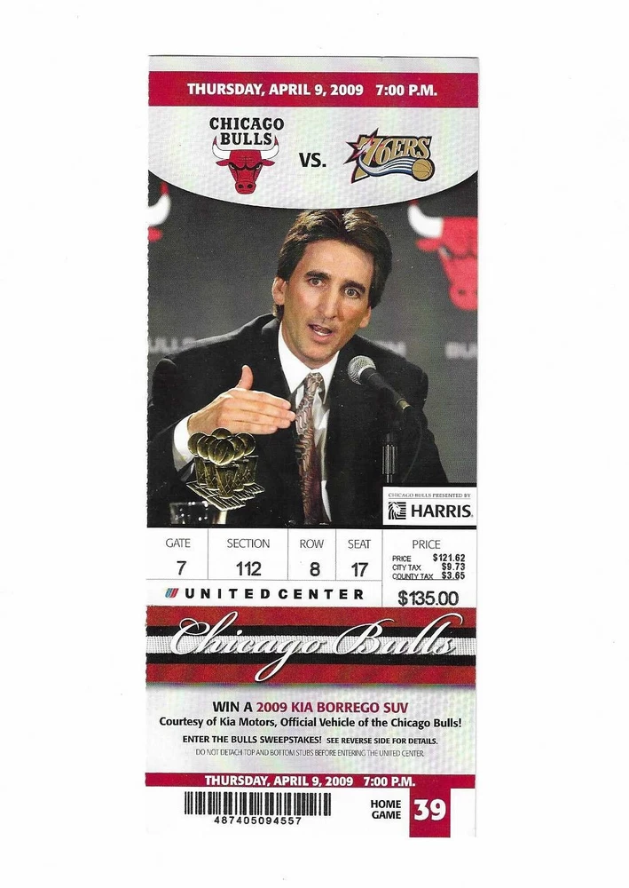 Chicago Bulls vs Philadelphia 76ers Unused Basketball Ticket from 4/9/2009
