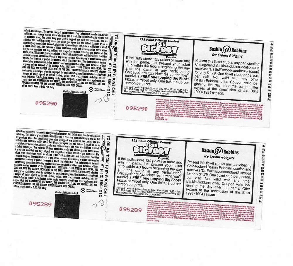 Chicago Bulls vs Utah Jazz Unused Basketball Tickets From January 14, 1994 Here are 2 unused Chicago Bulls vs Utah Jazz Basketball Tickets from January 14, 1994. The game took place at The Chicago Stadium in Chicago, Illinois. The tickets are in good condition and would make an excellent addition to your collection. Payment Payment is due within 24 hours of sale. Shipping Your item will be shipped within 24 hours of receipt of payment via US Mail. Terms and Conditions All Sales are final. No Refunds