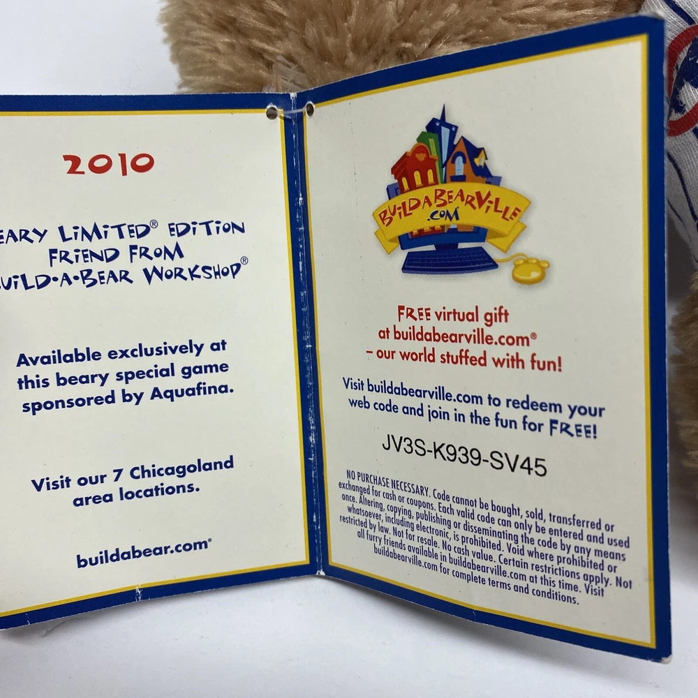 BuildaBear Workshop Chicago Cubs Limited Edition 2010 Brown Bear with Original Tags Logo on foot has some wear...see pics
