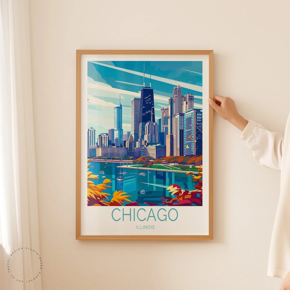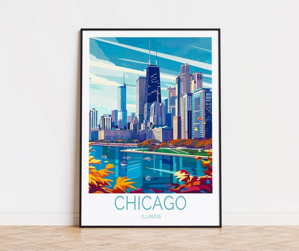 Chicago Illinois Travel Poster Illinois Print Chicago Wall Art Usa Custom Travel Poster Birthday Gifts Wedding Present Material: Premium luster photo paper Print type: Inkjet printing One side printed + The finish provides the highest possible resolution and color saturation + Lasts up to 200 years in color and 400 years in black-and-white + Printed on high-quality resin-coated photo base paper medium + Posters can be hung with double-sided tape, tacks, or framed + Hand washing with a gentle cry cloth is recommended for extended durability I will hand select the best choice of paper for your chosen design to ensure top quality results for a beautiful, bright and luxurious print. All prints are sealed in cellophane slips for protection during transportation, and are shipped in a protective cardboard envelope.