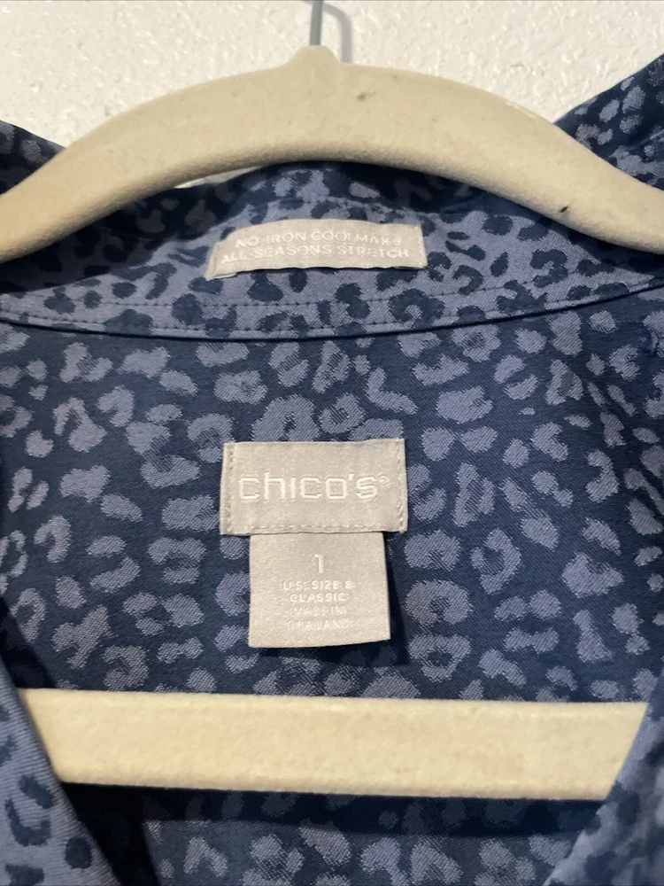 Chico’s 1 US size 8-10 no iron coolmax all season dotted stretch animal print. Condition is Pre-owned. Shipped with USPS Ground Advantage.