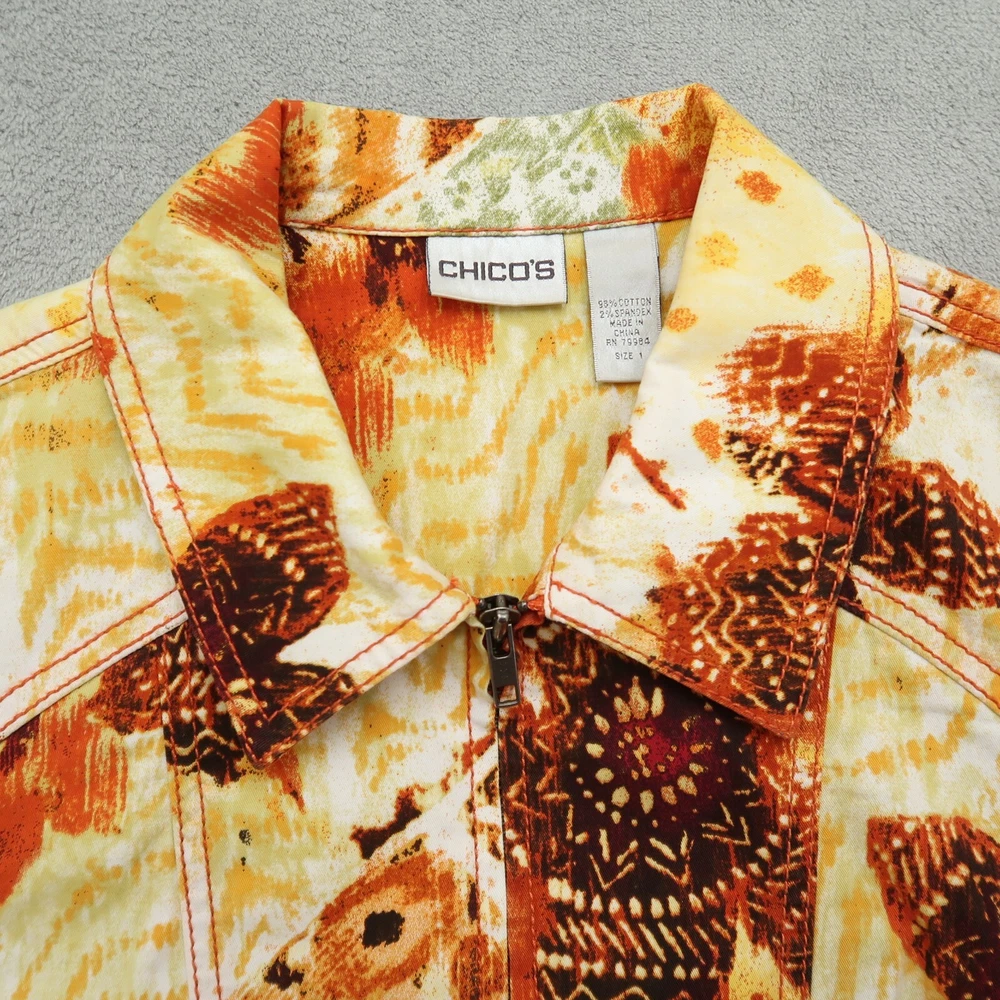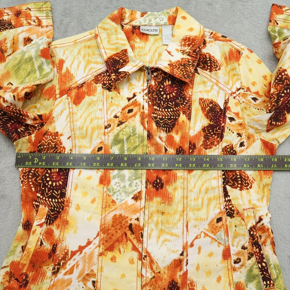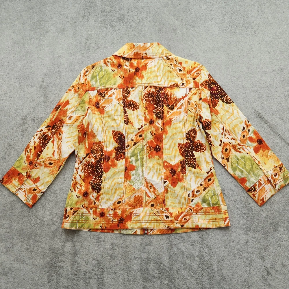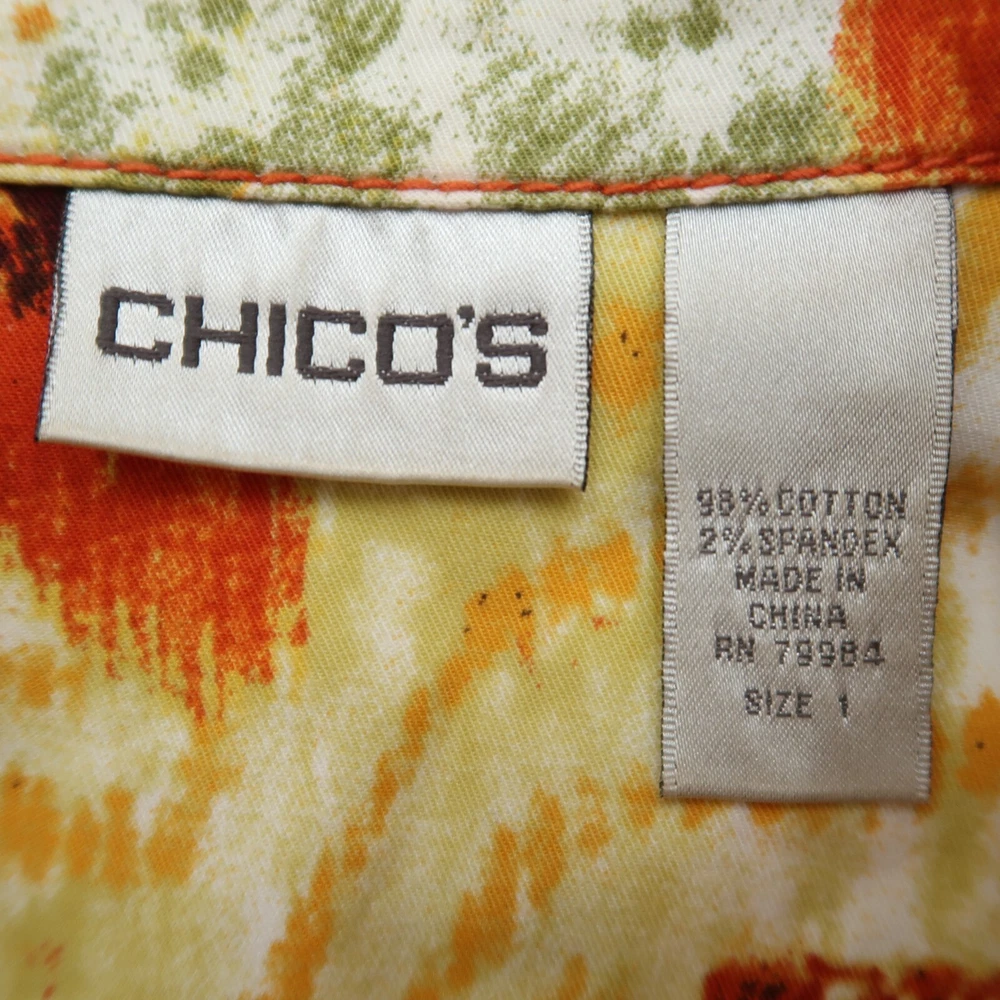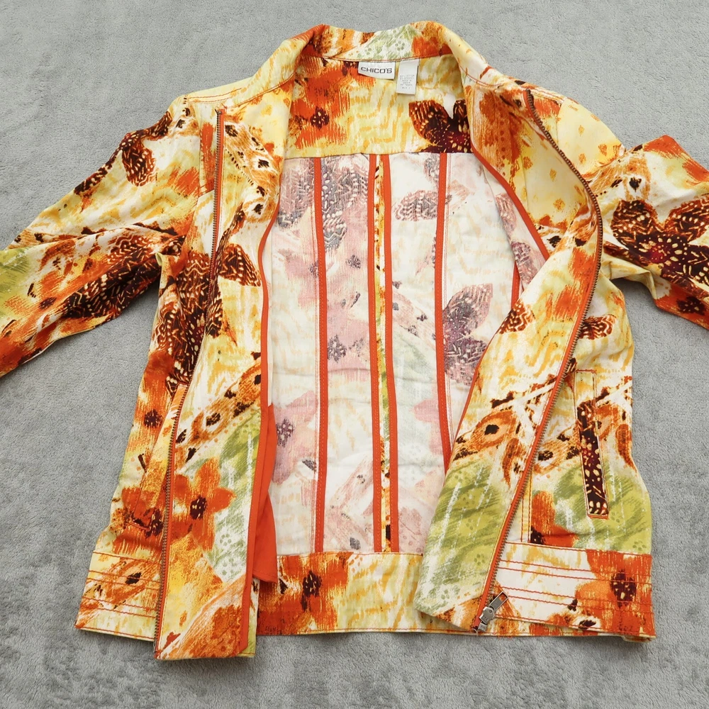 Chico's Jacket Women's Size 1 US-8 Medium Abstract Print Graphics 3/4-Sleeve in Very Good Condition.