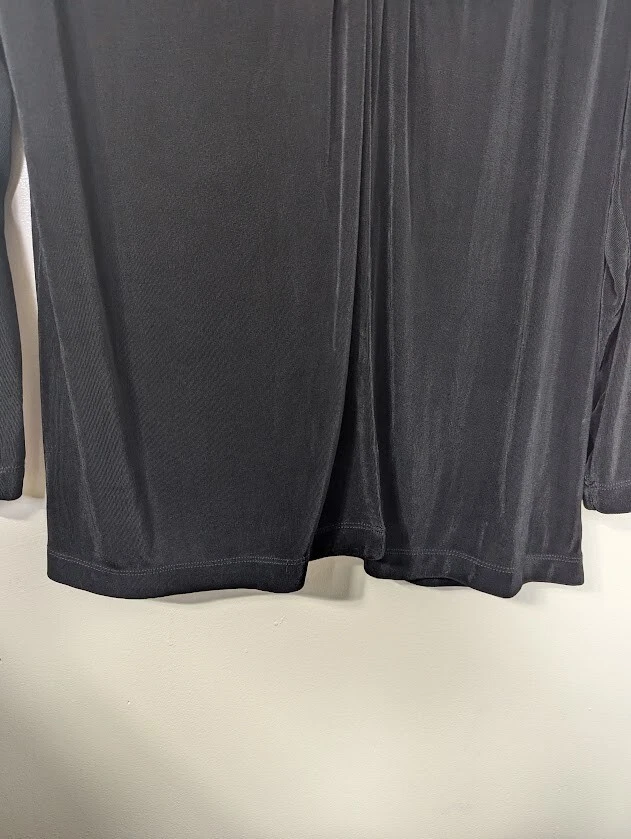 Chicos Traveler Cardigan Womens Black Slinky Knit Long Sleeve Sparkly Clasp sz 3 (Large) Holiday - Wedding - New Year's Measures approximately 24.5" armpit to armpit (see photo for all measurements) 95% Acetate 5% Spandex Good Condition