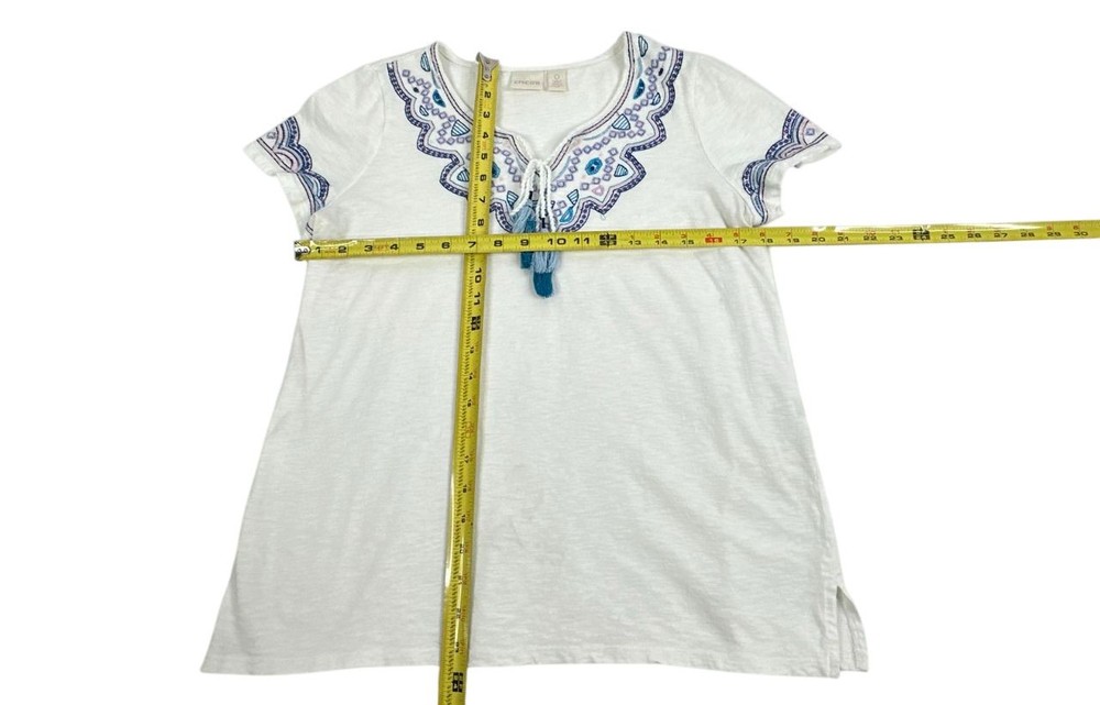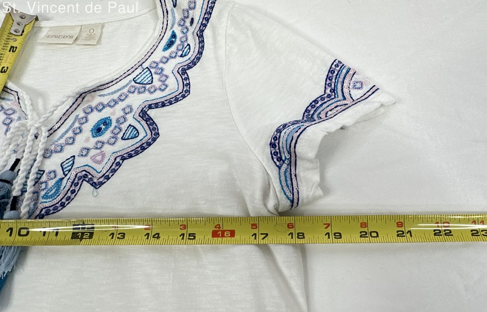 Chico's White Embroidered Tassel Neckline Top. Women's - Size 0 Brand: Chico's Type: Embroidered Tassel Neckline Top. Women's Condition: Excellent - shows no sign of wear Size: 0 Color/Pattern: White