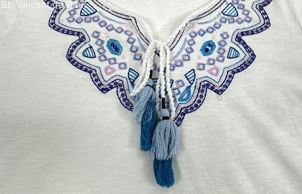 This top is absolutely stunning! The delicate embroidery and tassel neckline add such a chic, boho touch. The fit is perfect—flattering and comfortable—and the white color makes it so versatile. It looks brand new, no signs of wear at all. A must-have for any wardrobe!