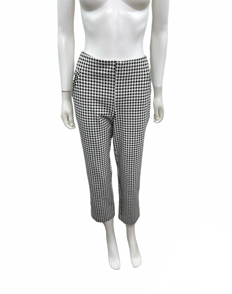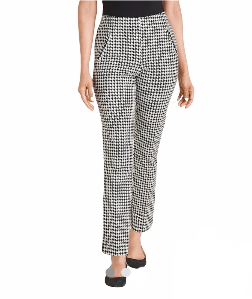 Chicos Women’s Size 12 Elastic Waist Juliet Houndstooth Ankle Pants. Product Details Juliet ankle pants now have the So Slimming technology you love—and it's better than ever, with a new and improved front panel that has even more comfort and stretch, and better tummy control. (That's what we call a fashion victory.) There's nowhere these fitted, slim-leg pants can't go, with a sleek pull-on silhouette that eases over every contour in a classic houndstooth check print. The Fabric: Ponte fabric powered by exclusive So Slimming® Hidden Fit technology that slims and smooths at the tummy. Waist 36” Inseam 26” Measurements taken laying flat New without tag Smoke free pet free home
