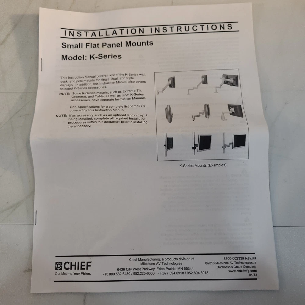 Chief KWS110B Piviot/Tilt Wall Mount Hardware Included Holds Up To 40lb For flat panels up to 40lb New open box see photos SJ