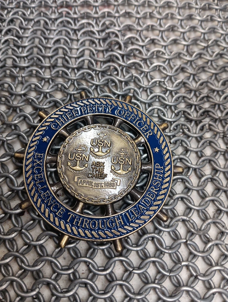This is an authentic U.S. Navy Chief Petty Officer challenge coin. It is a new coin that has never been used and is an original piece. The coin is a militaria item that would make a great addition to any collection. It was manufactured in the United States and features the Navy force. Replica