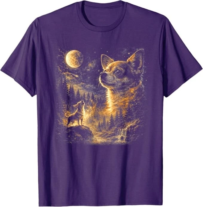 Chihuahua Howling to The Moon Vintage 90s Retro Animal T-Shirt Designed and Printed in USA Product Features: • Classic Look and Feel: This ultra cotton tee offer the timeless appeal of traditional cotton. The high-quality print enhances its casual appearance. • Material: Made from 6.1-ounce, 100% cotton. (Note: Dark Heather variant is 50% cotton, 50% polyester.) • Durability: Features double-needle stitching on the neck, sleeves, and hem for added durability. Designed for a roomy, unisex fit. • Print Type: DTG (Direct to Garment) • Manufacturer: Gildan 5000, 5000b (Made in USA) Shipping Information: • Handling Time: With POD(Print-On-Demand) product model, we typically require about 3 business-days handling time before shipping. In most cases, our handling time’s , rang e from 1-2 business days. • Delivery Time: • USA: Approximately 2 -6 business days • Canada: Approximately 6-10 business days (We currently don’t offer international Shipping) • Worldwide: Approximately 15-25 business days (We Currently don’t offer international Shipping) • Shipping Carriers: USPS and DHL • Note: Business days exclude weekends and holidays. Return & Exchange Policy: • Quality Guarantee: We stand behind the quality of our products and workmanship . Any defects or errors on our part must result in a refund/ replacement at no charge. • Conditions for Returns: Returns are generally not accepted for user errors such as incorrect selection of sizes, designs, or colors. Returns /Replacements are acceptable for damages such as poor printing results, incorrect size or design caused by us. • Note: Please reach out to us if there are any questions or issue s with your item, we’ll do our best to resolve any issue you might have. Note: • We’re glad to have your support! If you have a moment, y our honest feedback is very valuable to us. Thank you!