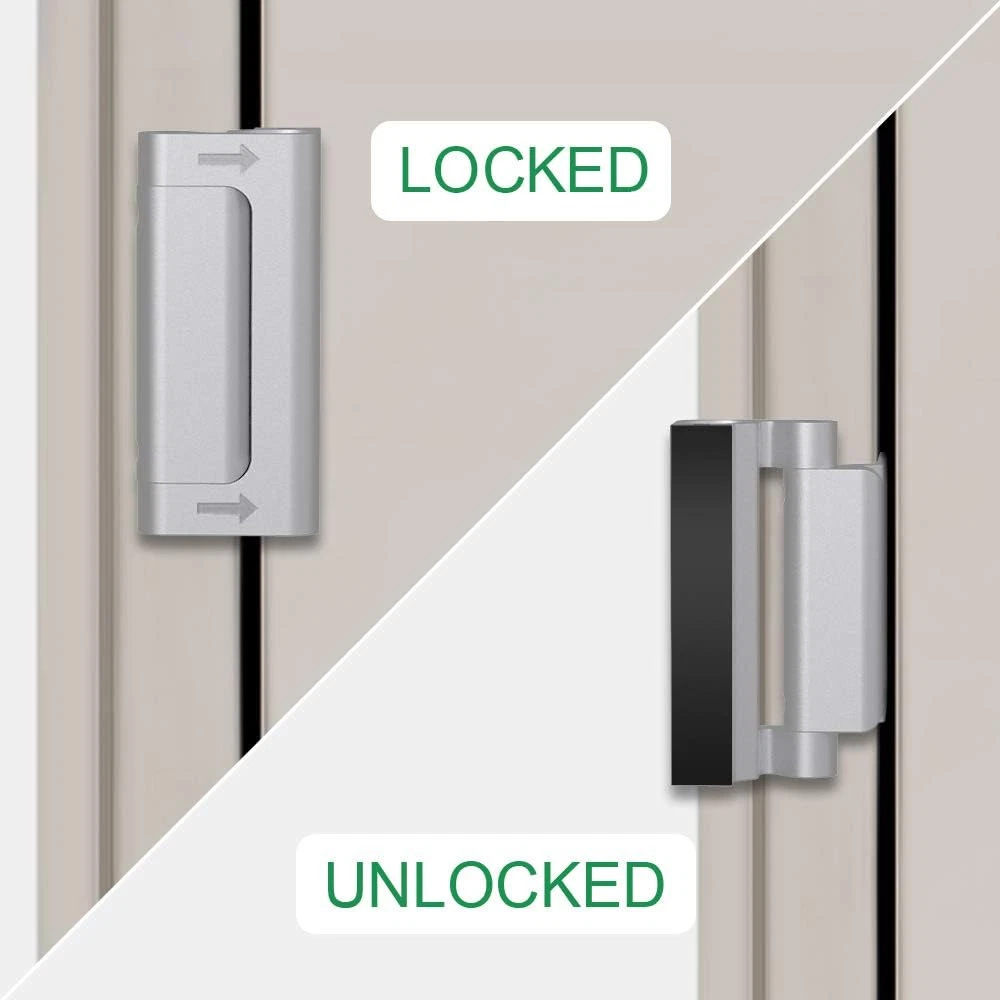Enhanced Door Security: The door reinforcement lock home security door lock are crafted with a 3-inch metal construction; withstands forces up to 800 lbs, offering superior protection compared to standard deadbolts; ideal for preventing unauthorized entry Effortless Operation: Door lock features an upgraded easy open design with a groove mechanism; simply slide the security door lock along the door to quickly access in emergencies; no tools required, perfect for door locks for kids safety Simple Installation for All Doors: Easily install the home security door lock reinforcement on any inward swinging door using a power screwdriver; complete your DIY setup in under five minutes; suitable for front door child safety lock and interior door applications Childproof Safety Locks: Featuring a spring-loaded design, the child safety locks for doors prevent children from opening the door to strangers; add an extra layer of security with this childproof door locks solution, keeping kids safe and secure Reliable Home Protection: As part of a robust security set, this front door safety lock for kids offers keyless convenience and strong defense against forced entry; ideal for use as a reinforcement lock or door latch lock on patio and bedroom doors Ideal Gift for Home Security: Surprise loved ones with the security door lock, designed to enhance home protection with ease; childproof door locks ensures loved ones' homes are protected against intrusions; thoughtful gift for new homeowners or families; also makes a Christmas stocking stuffer for adults