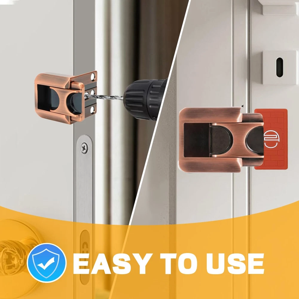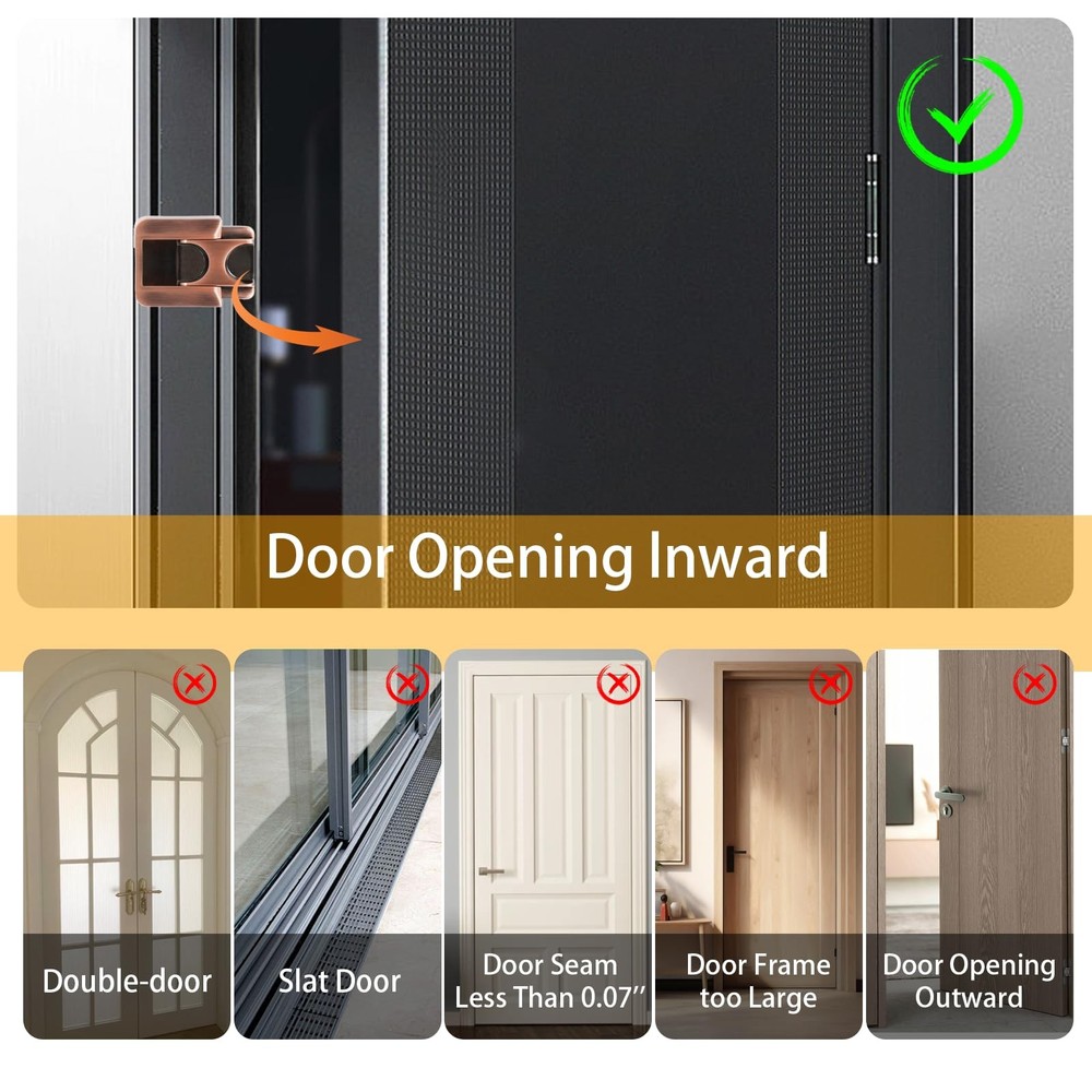 Enhance the security of your home with a reliable door lock system. This sturdy and durable lock offers robust protection against unwanted entry, giving you peace of mind. Easy to install and operate, it features a secure locking mechanism that ensures your doors remain firmly shut. With its sleek design, this lock seamlessly blends into your home's decor while providing an extra layer of safety. Upgrade your home's security today with this high-quality door lock solution. [Upgraded Version One-piece Design] Door locks made of zinc alloy with one-piece design. More robust and durable. withstand 800Ibs of force,12 times stronger than a normal deadbolt against being kicked in.. We equipped each door lock latch with 8 screws, including 6 long and 2 short, which you can choose according to your needs. Our safety door lock guard your home safe. This reinforcement lock is a good choice for home security. And the perfect gift for your families. 【Easy Install and Use 】Make installation a breeze with screws. Need drilling on door frame and come with stainless steel screws.It only takes a few minutes to install and one second to close. The Installation manual is included in the package.Please adjust the tightness before installation with the screws on the back.Door latch only use for your door opening inwards. 【Child Proof Locks】Home reinforcement door latch for kids safety with an Arc design, unable to unlock the door with a hook, It can be installed higher to prevent children from opening the door to strangers or going out. 【Keep Home Security】Security door Lock adds extra security measures for your family members while you are away on business. Suitable for both elderly parents and ladies when they are at home alone.keep your family peace in mind.Door latch can be installed at home for home security and in hotels for personal safety,extra hotel door lock and extra home reinforcement.Home security door lock defend your home safe, not only prevent break-in but also easily opens when meeting urgently. 【Compatible with Flar Door 】Room door lock compatible with flar door and only applied door opening inward. Idea for apartments,dormitories,Hotel,bedrooms and other people in need.house warming gifts brings you additional safety, security, and privacy.