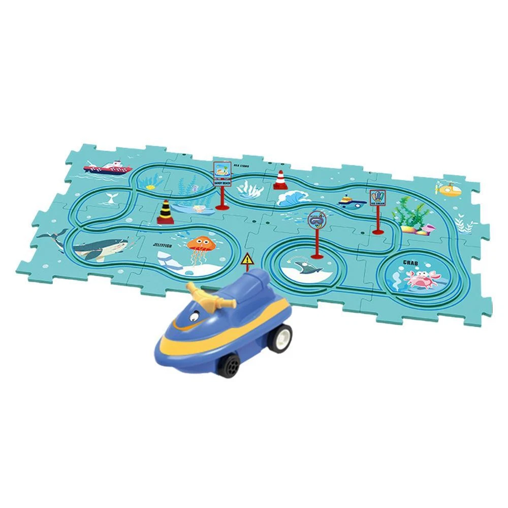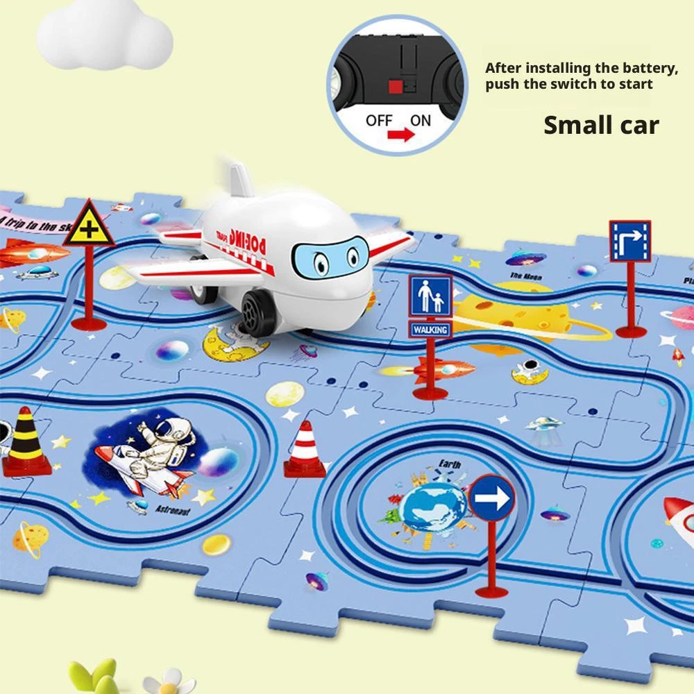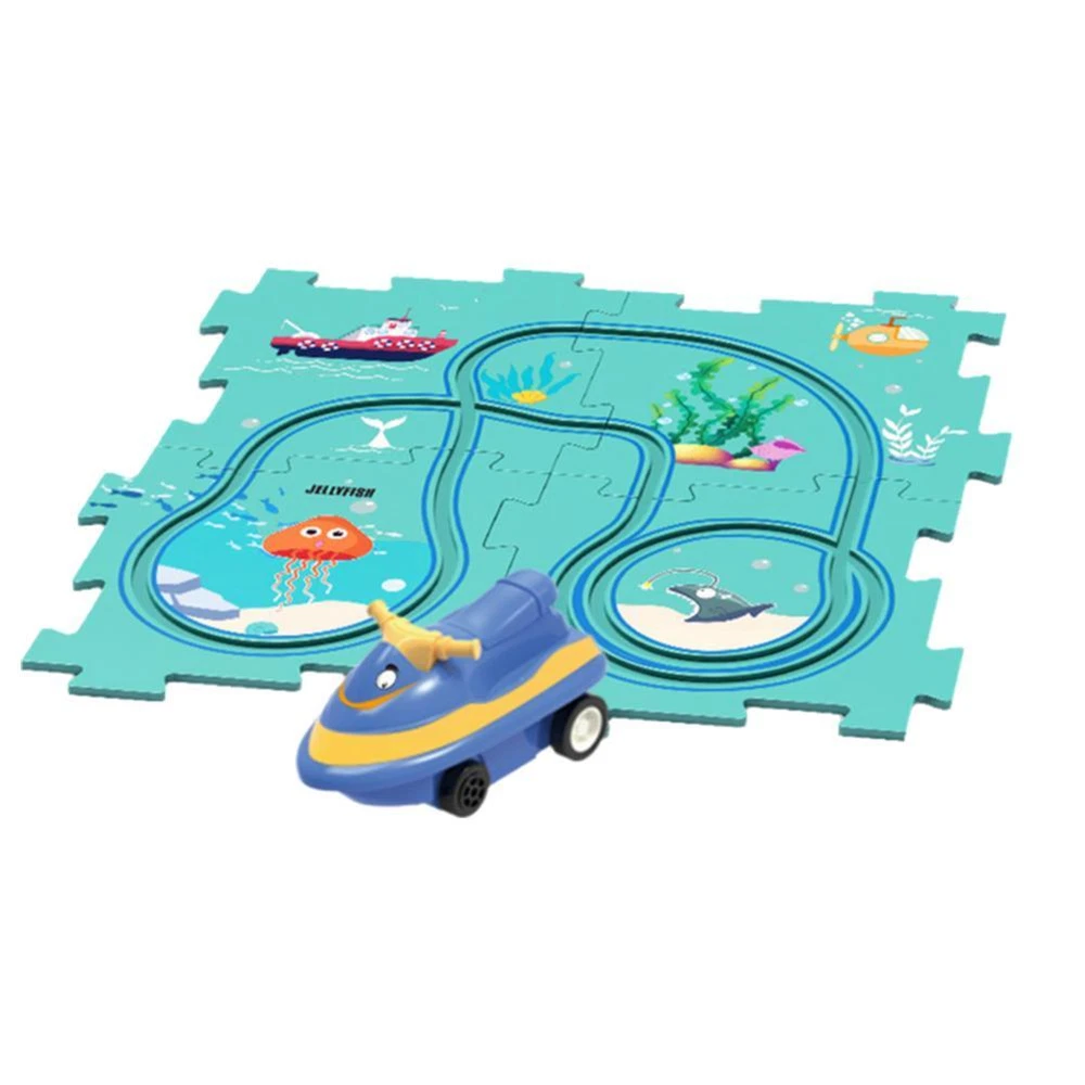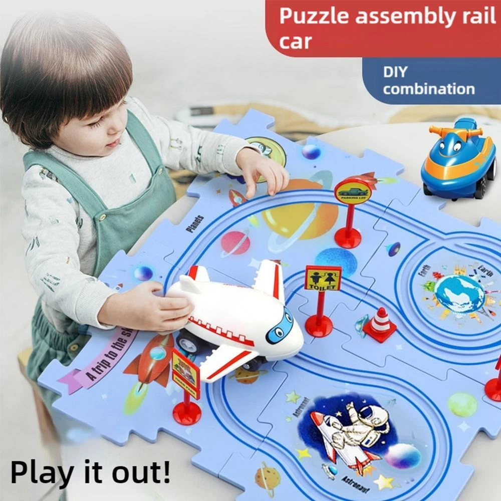 Children's Educational Puzzle Track Car Play Set DIY Assembly Electric Tram"