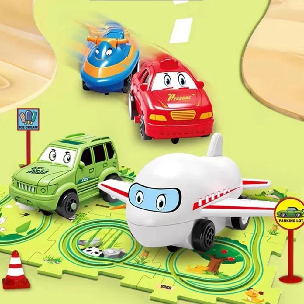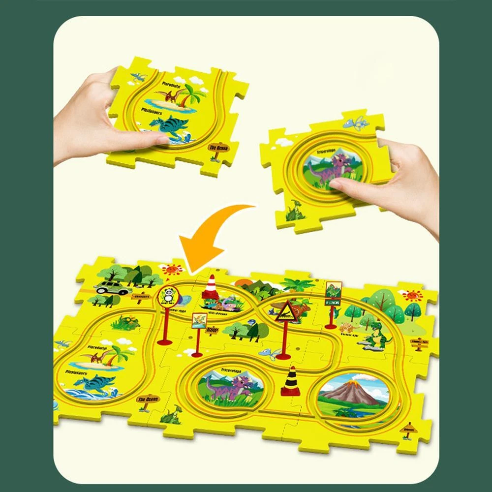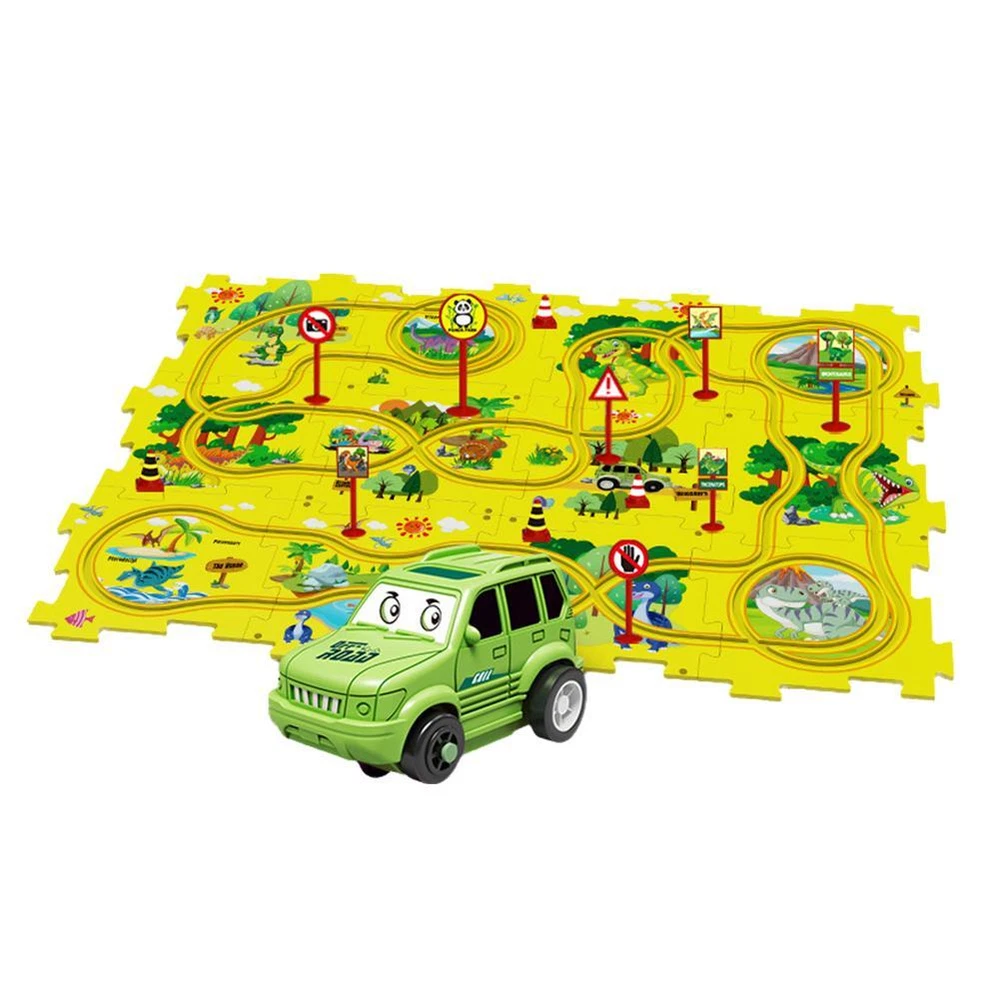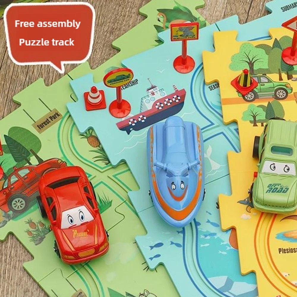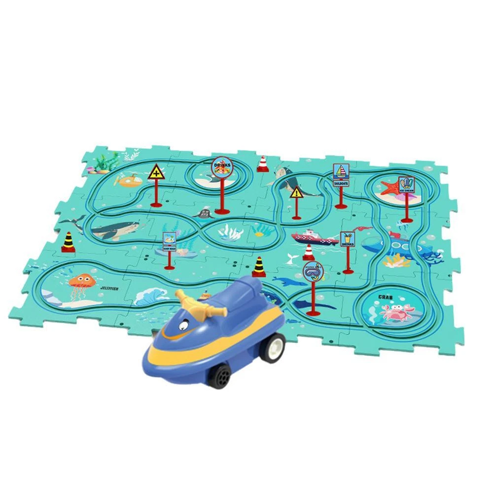 Children's Educational Puzzle Track Car Play Set DIY Assembly Electric Tram"