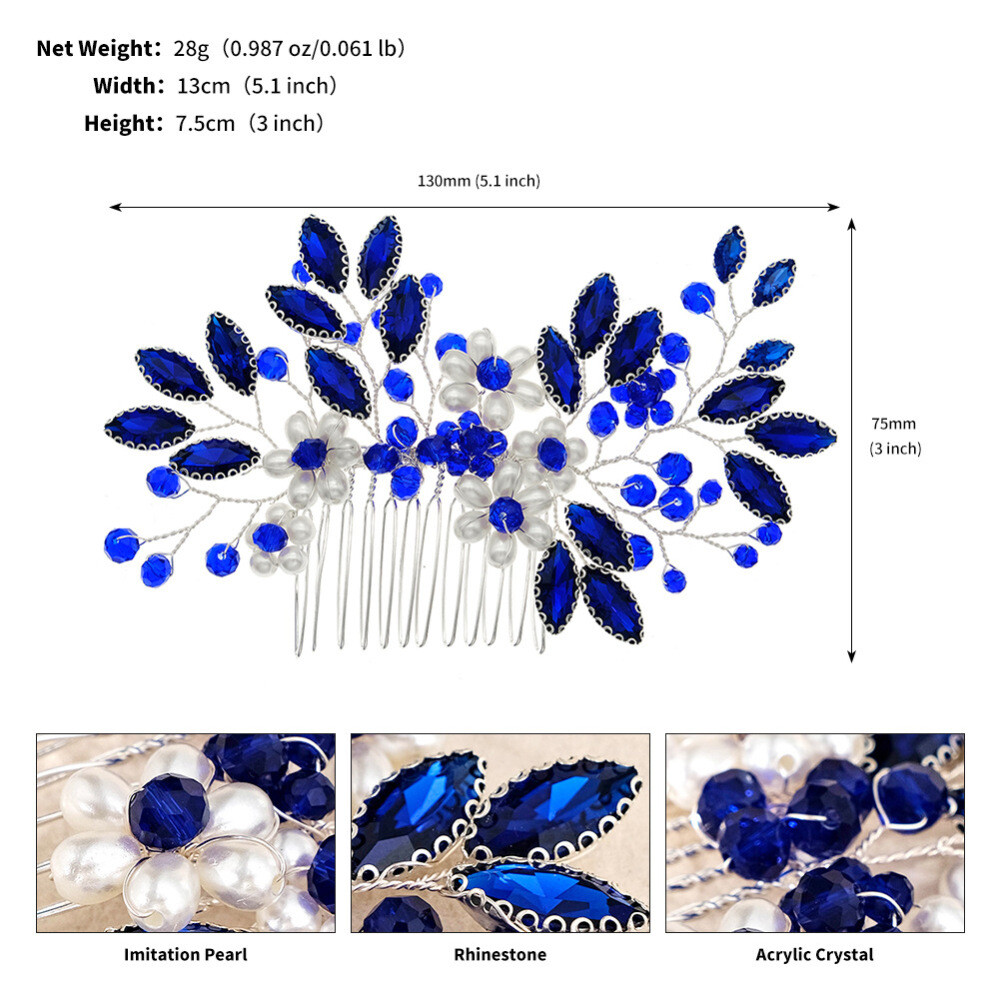Features: Elegant and Sparkling Design: Our hair jewelry headdress features a forest-inspired design, handmade with sparkling rhinestones and white pearls for an elegant touch. Versatile Hair Comb: This hair jewelry hair comb for women is perfect for various occasions, including weddings, bridal events, bridesmaid gatherings, and even dating. Glittering Headpiece with Smooth Teeth: Our hair jewelry wedding bridal hair comb is a stable headpiece that features smooth teeth, providing a secure and comfortable fit for thick hair styling decoration. Perfect Hairstyle Making Tool: This hair jewelry headdress is perfect for gown dress hairstyle making, adding a touch of glamour and elegance to any hairstyle. Quality Materials: Our forest style handmade sparkling headwear is made with quality materials, including shiny rhinestones and white pearls, ensuring durability and long-lasting wear. Specification: Material: Alloy, rhinestones, imitation pearl Product Size: 13*7.5cm Product Weight: 28g Notes: 1. Due to the lighting effects and shooting angles, there is a color difference in the product, please understand. 2. Due to manual measurement, there is a tolerance in the product size. Package includes: 1 * Hair Comb Headdress