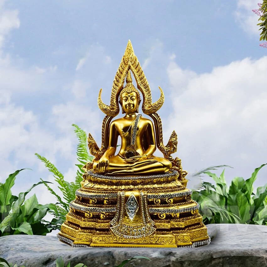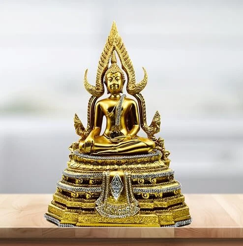 Menu 1. We require immediate payment. 2. We currently accept payment via eBay managed payments only. 3. Once payment is cleared, we will dispatch your shipment within 1-3 business days. Please refer to the "Shipping" tab for more information regarding shipping speed to your destination. Chinnaraj Buddha Statue 12" H. Gold with Diamonds Thai Buddha Statue for Home Decor Buddha Sculpture Small Gift Office Gift Office Decor Figurines Meditation Decor Outdoor Statue Product description Made from high-quality materials: Buddha statues are made from Poly Resin, which are known for their beauty and durability. They can stay outside. Buddha Statue Sizing : 7.5(W)*4.5(D)*12.0(H) inch : weight of statue 1220 g.(2.6 LB) : Knee to knee 5 inch Product From Thailand and Handcrafted by skilled artisans: These statues are often handmade by skilled craftsmen, ensuring that each one is unique and of the highest quality. Realistic Statue Design : This Buddha image has been reproduced to be very close to the real Chinnaraj Buddha Statue at Wat Phra Si Rattana Mahathat, Thailand. Perfect for home décor or gift giving: Thailand buddha statues make for beautiful and meaningful home décor pieces or thoughtful gifts for friends and loved ones Traditional and cultural significance: In Thai culture, buddha statues are considered sacred and are often found in temples and homes as a way to bring good luck and blessings. PLEASE MESSAGE US IF YOU HAVE ANY OTHER QUESTIONS, AND MANY THANKS FOR READING ALL OF THIS. Copyright ©#. All Rights Reserved.