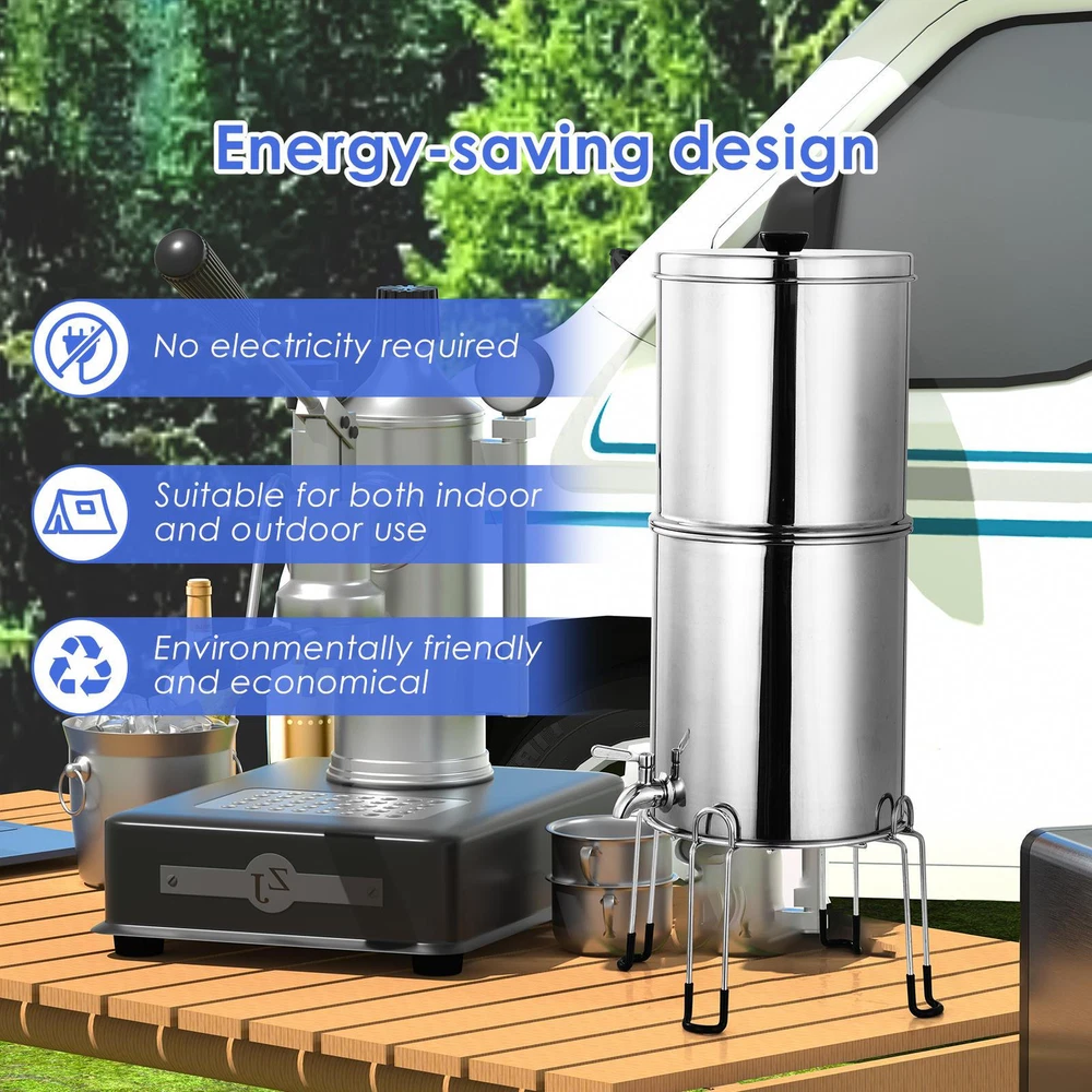 Chlorine and Fluorine Water Filter Stainless Steel Drinking Water Filter Bullet Points: Cutting-Edge Filtration: With our innovative 8-stage Filtration and composite filtration technology, our Water Filter System reduces most pollutants, as well as rust, sediment, organic matter, and heavy metals, while intercepting harmful fluorine and chlorine for cleaner, healthier water. Fluorine Reduction: This Water Filter System features advanced fluorine removal material, and eliminates up to 90% of fluorine, ensuring water safety with no harm to human health. Seamless Setup: Equipped with a comprehensive accessory kit, the water filtering system boasts a sturdy build and food-grade stainless steel exterior for a secure and non-slip installation. Enjoy an effortless setup complemented by a water tap, ensuring optimal user convenience and satisfaction. Energy Saving: Save energy while delightful purified water both indoors and outdoors with this water filter system. No electricity is needed. Fill the upper container with tap water and the lower container provides clean water. Perfect for outdoors. Ensure Hydration Quality: Our water filter system uses advanced filtration technology and replaceable filters to provide up to 6,000 gallons of pure water, with 2 white fluorine and 2 black carbon filters. Replacing filters every 6 months ensures optimal performance for all water types. Purify your water with our Water Filter System for Home! Our composite filtration technology and advanced fluorine removal material provide clean water for indoor and outdoor use. Plus, our product comes with rich accessories and replaceable filters for long-term use. Specifications: A: Material: Stainless steel Capacity: 2.25Gallons Applicable temperature: 32°F -90°F Water rate: 4 gallons/hour Filter life: 6000 mph Packing List: 1 *water tank 2* filter element (CB and UF 6000 Gallons) 1* stainless steel faucet 1* stainless steel bottom covered with rubber bracket 2* fluorine filter element B: Material: Stainless steel Capacity: 2.25 Gallons Packing List: 1* water tank 2* filter element (CB and UF 6000 Gallons) 1* stainless steel faucet 1* stainless steel bottom covered with rubber bracket 1.You can make a Credit payment via Paypal.Paypal will let you use MasterCard,Visa to pay. 2.Payment should be completed within 5 days after auction closed, or unpaid dispute will be filed for an closing auction.An unpaid case will be filled after 4 days. ● We strive for 100% customer satisfaction ! ● Positive Feedback is very important to us. ● We hope that you contact us immediately BEFORE you give us neutral or negative feedback, so that we can satisfactorily address your concerns. ● We promise to offer the lowest price and high quality produce. Dear buyers : ● Welcome to my store ! ● Your satisfaction is our top goal,we appreciate your patronizing. ● If you have any questions, please contact us before leave negative or neutral feedback, we will try our best to solve the issue to your satisfaction, thanks ! ● If you are satisfied with our service, please rate the details of the transaction (Detailed Seller Ratings) on eBay. ● Please always talk to us via ebay Message. ● We appreciate your business and look forward to growing our e-Bay sales with satisfied customers.