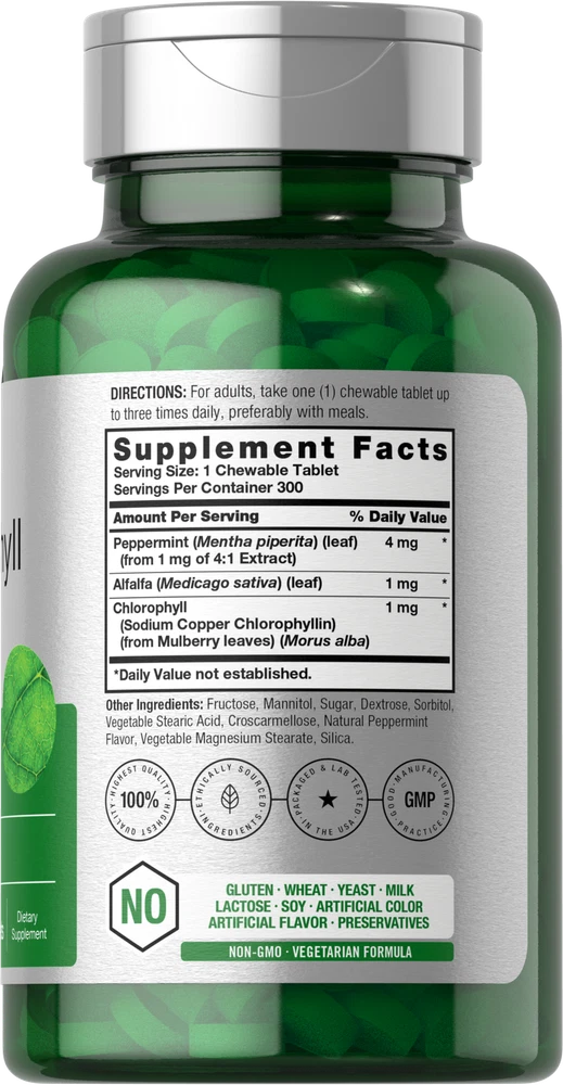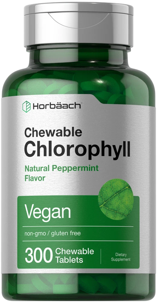 What is Chlorophyll? Chlorophyll is a naturally occurring green pigment plants use to harness the sun's energy. Chlorophyll has naturally occurring antioxidant properties and can be obtained from certain green foods including spinach, alfalfa, chlorella, and spirulina. A Chlorophyll product can now also provide a valuable source of this compound for your supplement routine. Supplementing with Chlorophyll: Chlorophyll is now featured in many different forms like pills, tablets, powder, gummies, softgels, tea, capsules, oil, tincture drops, and liquid. Looking for the best way to add this important green to your daily routine? Horbaach Chewable Chlorophyll: Horbaach's Chewable Chlorophyll is the best way to add this powerful green compound to your herbal supplement regimen. Our advanced vegan and vegetarian formula features Peppermint, Alfalfa and Chlorophyll in convenient chewable tablets. It's a gluten-free, and non-GMO, an exceptional formula powered by nature. WARNING: If you are pregnant, nursing, taking any medications or have any medical condition, consult your doctor before use. If any adverse reactions occur, immediately stop using this product and consult your doctor. If seal under cap is damaged or missing, do not use. Keep out of reach of children. Store in a cool, dry place.