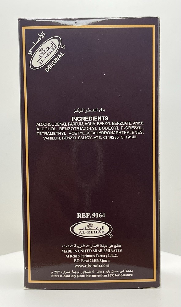The Choco Musk Arabian Perfume Spray by Al Rehab is a luxurious fragrance with a rich, chocolatey scent. This 50ml spray cologne is perfect for personal use and is sure to leave a lasting impression. Manufactured in Saudi Arabia by Al Rehab, this perfume combines the sweet aroma of chocolate with the exotic notes of musk, creating a unique and captivating scent. Experience the essence of Arabia with this high-quality fragrance from Crown Perfumes USA Seller.