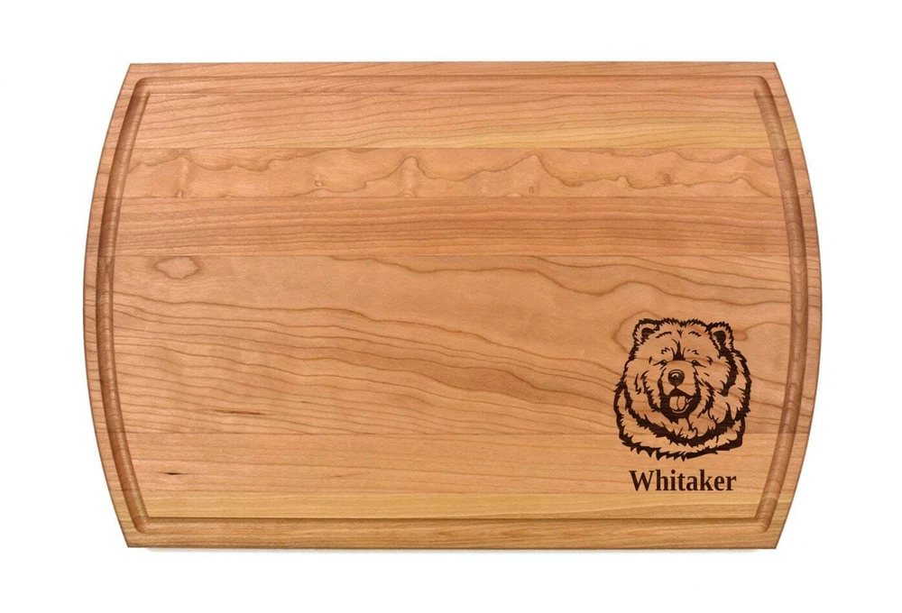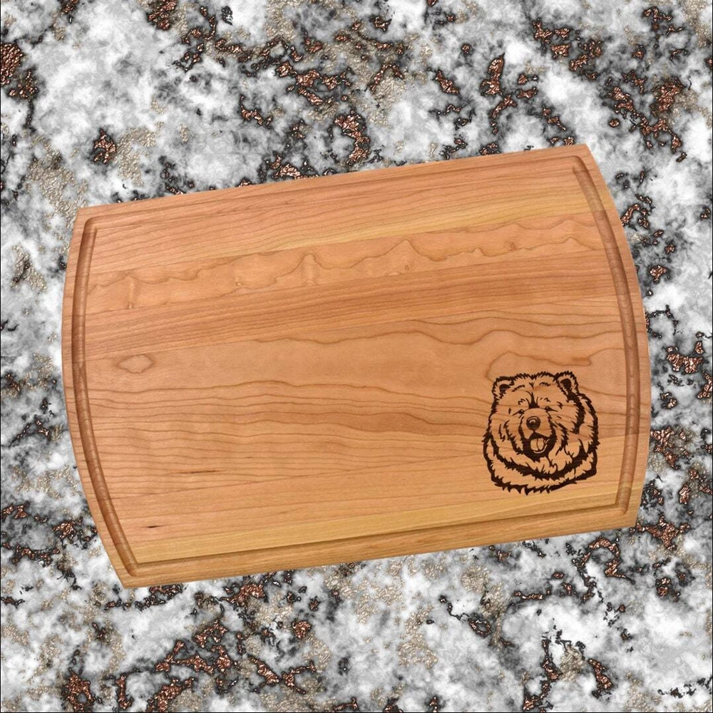Design: Personalized Chow Chow Dog Cutting Board or Charcuterie Serving Tray All items ship via USPS - please make sure your address is correct :-) Whether used as a charcuterie serving tray for snacks or cutting board, our bamboo, walnut and cherry custom boards are the perfect addition for the home and make the perfect gift for your loved one celebrating a birthday, anniversary, new home, wedding, etc! *** FEATURES *** • SIZES: We have multiple styles and sizes available. To see our current sizes available, click the drop-down menu. The photo slide contains a photo showing each side by side. Please note, the board with the juice groove only has the groove on the front side of the board. • THICKNESS: Bamboo Boards - Approximately 1/2" Thick; Walnut & Cherry Boards - Approximately 3/4” Thick • UNIQUE: Every board is unique with the grain and coloring varying throughout - no board is the same! • CARE INSTRUCTIONS: Hand wash only with warm water. Do not soak. Please apply mineral oil throughout the board’s life. • PERSONALIZATION/CUSTIMIZATION: Do you want the text placed differently on the board? Please don’t hesitate to contact us. All personalization notes can be entered in the personalization box when checking out. • SHIPPING: All cutting boards ship within 2 to 5 business days. • WHOLESALE ORDERS: Please don’t hesitate to contact us for information about wholesale orders. Processing times for larger orders may change. • NOTE: Colors can vary a bit on different monitors and screens. Any props included in photos are not included. Please be sure to double-check your address to make sure it is accurate for USPS delivery. If a package is returned to us due to an invalid address, the buyer is responsible for all additional shipping charges. We appreciate you supporting small business – best wishes! For items ordered with simple edits, we do not send proofs since the layout doesn't change from the example(s). However, in the event there are requests that change the layout from the example(s), we do send proofs for approval before making the product. If you'd like a proof before we make the product, please note so in the personalization box.