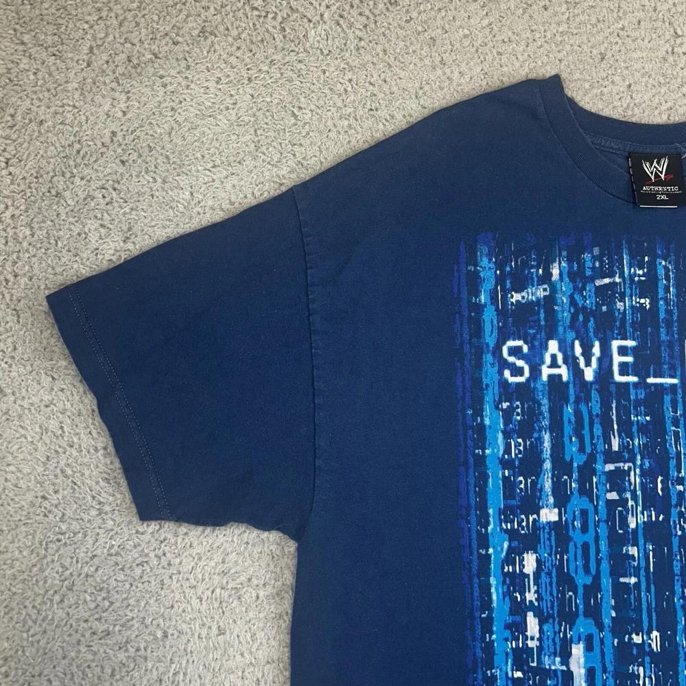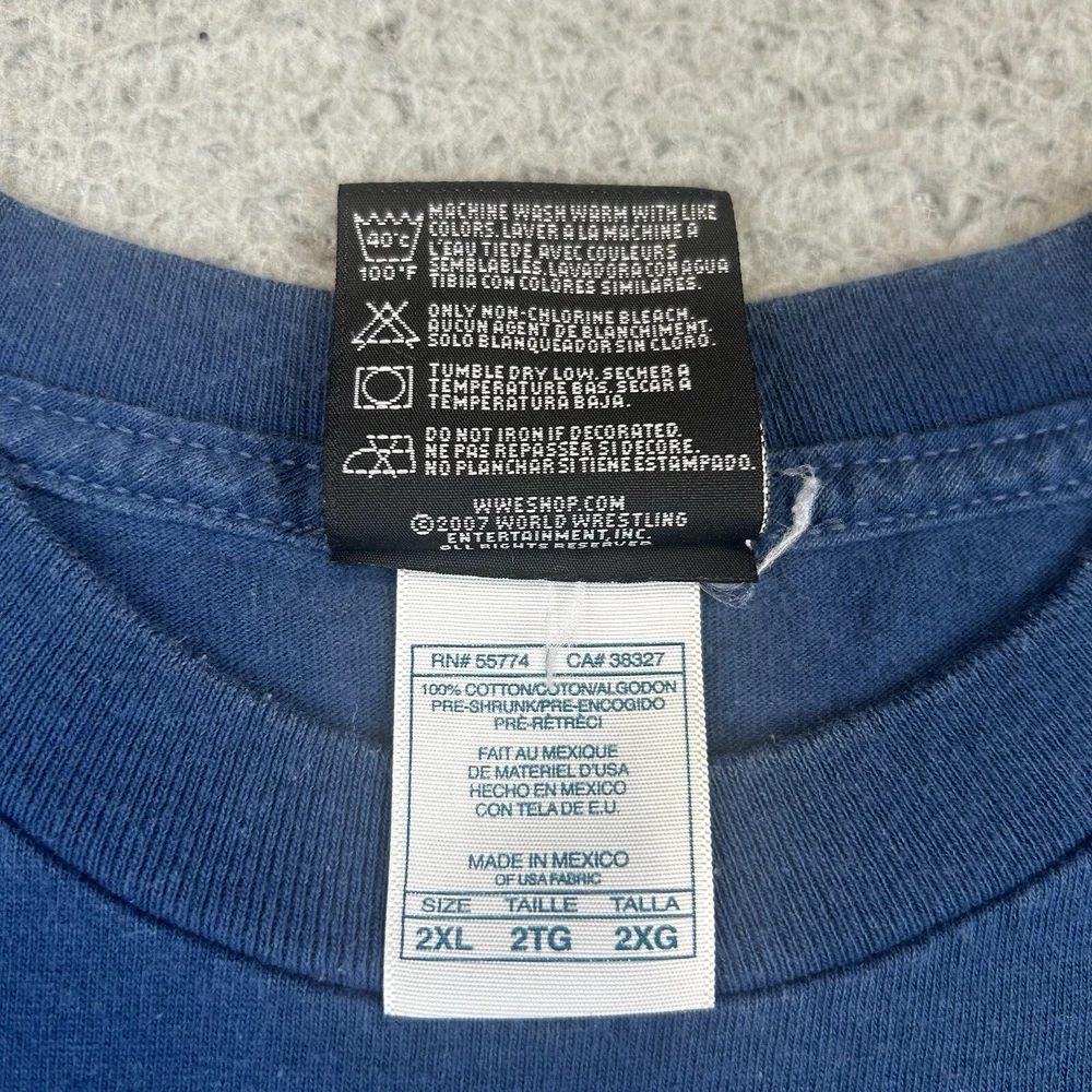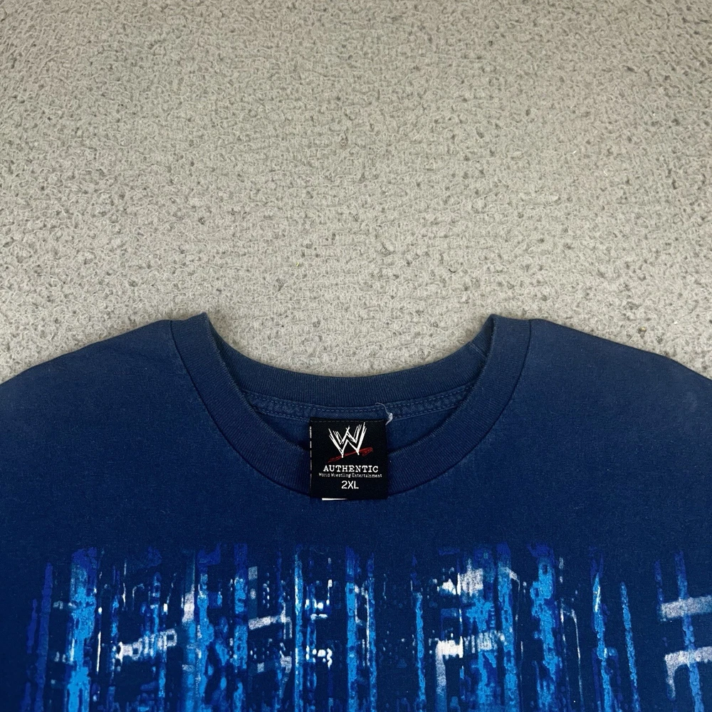 Fabric Type: Knit Character Family: Aerosmith Department: Men Country/Region of Manufacture: Mexico Size Type: Regular Sleeve Length: Short Sleeve Pattern: Graphic Print Color: Blue Character: Chris Type: T-Shirt Size: 2XL Neckline: Crew Neck Features: Double-Sided Material: Cotton Vintage: Yes Brand: WWE Fit: Regular Theme: Sports