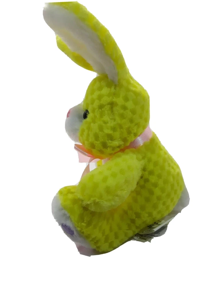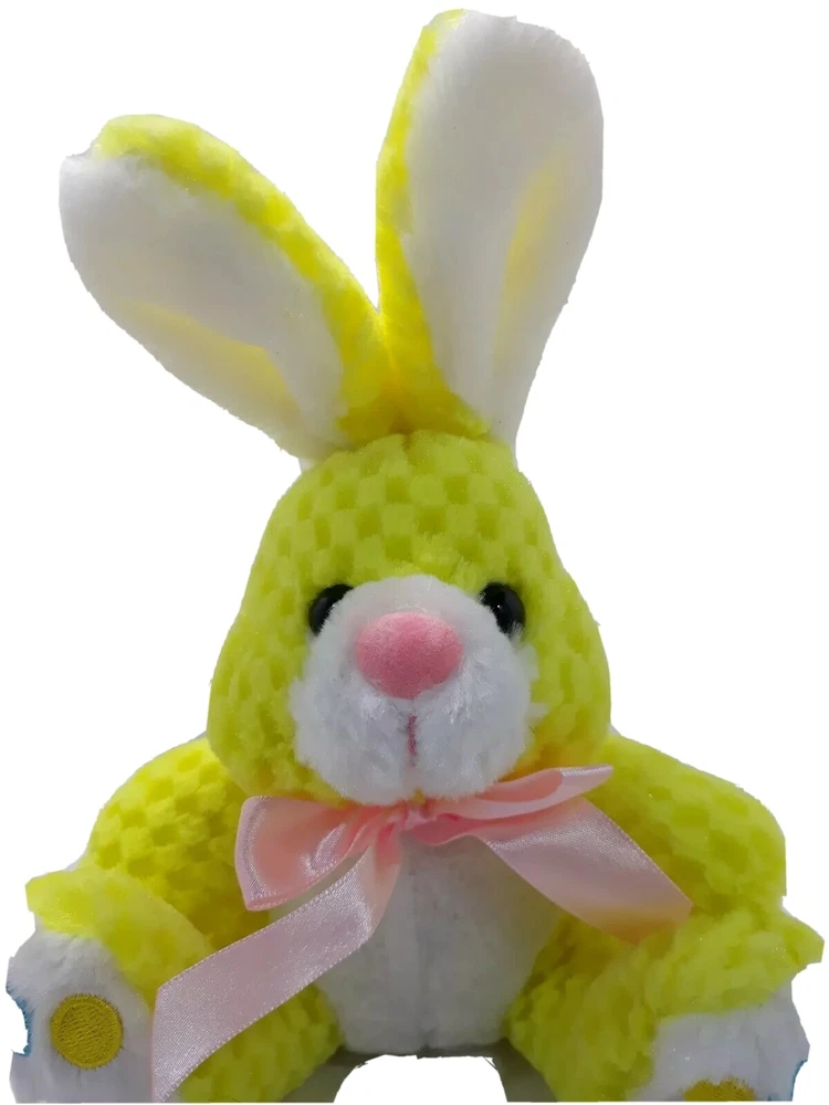 2008 Chrisha Playful Yellow Easter Bunny Rabbit Waffle Texture Plush Toy 6". Condition is Used. Cb12. R56