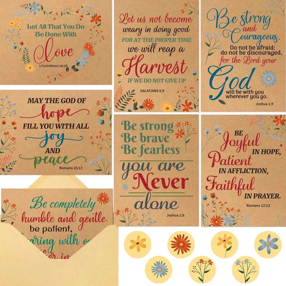 Store New Arrivals Add to Favorite View Feedback Contact Christan Greeting Cards Kraft 24 Pack Religious Cards with Bible Verse Bulk Motivational Encouragement Card Envelopes Scripture Inspirational All Occasion Cards Assortment Description Color kraft Number of Items 24 Package Includes: 24 pack religious bible verses cards with envelopes and stickers; 4 x 5.25 inches; 8 styles; Well packaged in a box All Occasion Cards: The all occasion kindness thinking of you cards feature flowers with bible verses on the front; Blank inside for you to write best wishes and blessings; These inspirational thinking of you cards are the perfect holiday cards and offer daily words of encouragement Daily Gifts: Perfect gifts for church family friends, members and prayers. Inspire your classmates, teachers, families or coworkers, suitable for many occasions Multi Usages: Hand these out at church, school, work, home, classroom to express your blessings and wishes; Spread love, positivity, encouragement, appreciation, praise or joy in a personal and practical way Wide Applications: The religious cards are for Thanksgiving, Christmas, New Year, holiday, baby shower, party invitation, wedding, bridal shower, and any time you want to express your gratitude and blessings to your guests, friends and family Product Description Bible Verses Cards With Envelopes and Stickers 24 Pack 24 pack religious bible verses cards with envelopes and stickers; 4 x 5.25 inches; 8 styles; Well packaged in a box Gifts for church family friends, members and prayers. Inspire your classmates, teachers, families or coworkers, suitable for many occasions Hand these out at church, school, work, home, classroom to express your blessings and wishes; Spread love, positivity, encouragement, appreciation, praise or joy in a personal and practical way ABOUT US Welcome to Alyzaar Bazaar! We’re a family-owned business committed to exceptional customer service and quality items at unbeatable prices. Our goal is to make every customer’s experience enjoyable, and we work hard to ensure satisfaction with each purchase. At Alyzaar Bazaar, we offer a handpicked selection of products that meet our high standards for quality and value. We believe in trust and reliability, aiming to deliver excellence in every transaction. Thank you for choosing Alyzaar Bazaar. We appreciate your support and look forward to serving you with the best products and service! SHIPPING We offer free shipping to the lower 48 states and typically ship within 2 business days of payment. Please note, we do not accept P.O. Boxes and require a physical address. We strive to ensure your package arrives promptly. However, please understand that factors like weather, high postal traffic, and shipping company performance are beyond our control. RETURNS As a family business, we take pride in offering only new, high-quality products. If you receive a defective or incorrect item, we accept returns within 14 days for a refund. Please contact us within 3 days of receipt to initiate the return. Buyer is responsible for return shipping costs. We appreciate your understanding and support as we strive to provide the best shopping experience. Your satisfaction is our priority, and we’re here to assist with any questions before your purchase. Thank you for choosing Alyzaar Bazaar! PAYMENT We accept PayPal. CONTACT US This page content is yet to come Please ad us to your favorite seller and visit again later Thank You CUSTOMER SATISFACTION Welcome to Alyzaar Bazaar! We’re committed to bringing you top-quality products and outstanding customer service. Your satisfaction is our highest priority, and we’d love to hear about your experience—please share your feedback after your purchase. Your support and insights help us improve and keep offering excellent products. Thank you for choosing Alyzaar Bazaar!