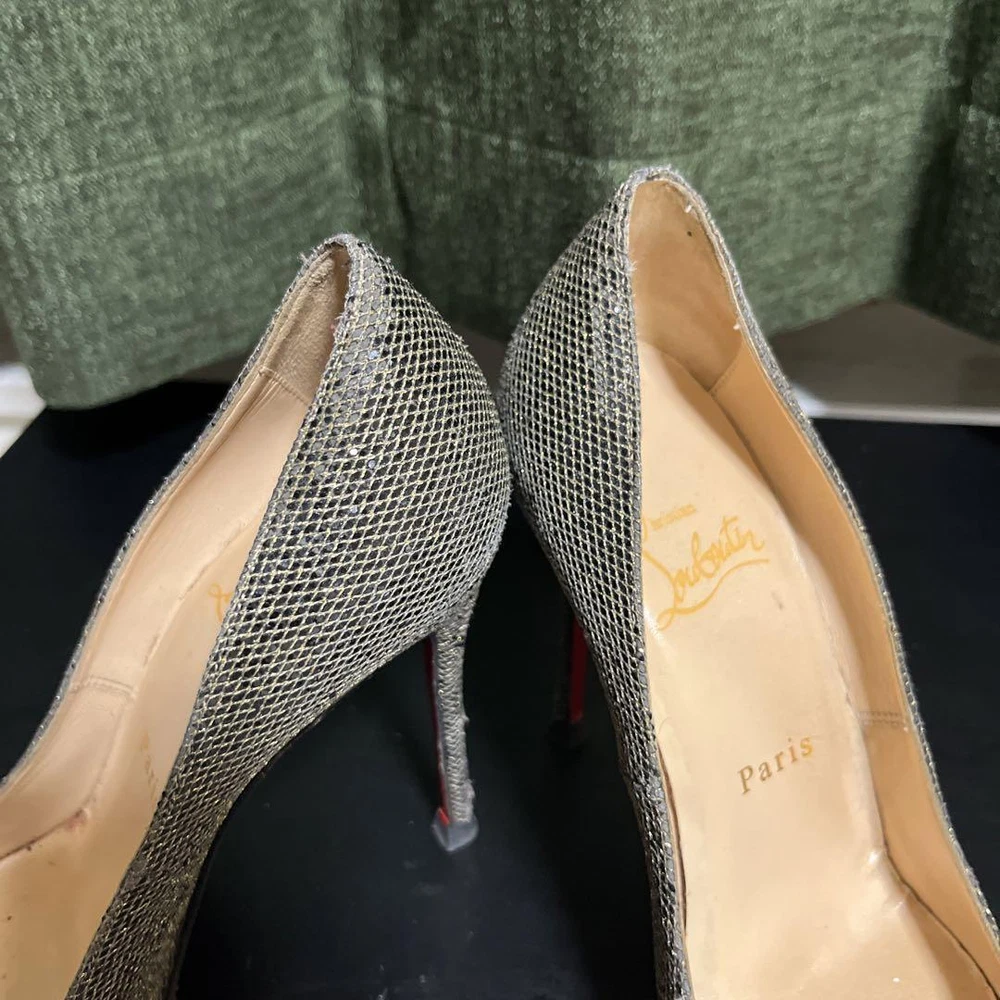 Christian Louboutin Gold Pumps Heels 36.5 EU (5.5 US) Used Sparkly Excellent+ Key Features **Product Description:** Elevate your style with these stunning gold-colored pumps, perfect for the upcoming season. Featuring a beautiful shimmer, these heels offer an elegant touch to any outfit. Please review the images for details on the condition, as there are some scratches. Returns and exchanges are not accepted to prevent item swapping. Comes with a dust bag. **Item Specifics:** - C:Exterior Color: Gold - C:Style: Pumps - C:Size: 36 1/2 - C:Department: Women - C:Product Line: Heels - C:Hardware Color: Gold - C:Condition: Used (scratches present) - C:Accessories: Dust bag Specifications Brand Christian Louboutin Country Japan US Shoe Size 5.5 Department Woman UK Shoe Size 4 Theme shoes EU Shoe Size 35 JP Shoe Size 22.5 Product Description Item Title Women 5.5US Christian Louboutin Pumps Heels Payment Supports managed payments Please pay within 5 days after auction is finished. About Us We are located in Japan. It's our pleasure to make you happy by proposing our recommend item. If you have any questions or request about items, please feel free to ask us. International Buyers - Please Note: -Import duties, taxes, and charges are not included in the item price or shipping charges. These charges are the buyer's responsibility. -Please check with your country's customs office to determine what these additional costs will be prior to bidding/buying. -These charges are normally collected by the delivering freight (shipping) company or when you pick the item up - do not confuse them for additional shipping charges. -We do not mark merchandise values below value or mark items as - gifts - The US and International government regulations prohibit such behavior. Thank you for your understanding.