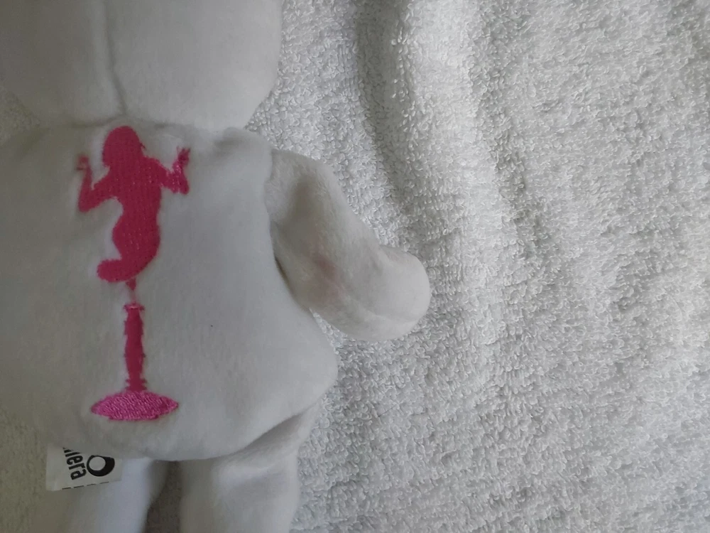 This only sat on a shelf but check the pictures the one arm has some pink on it. #I
