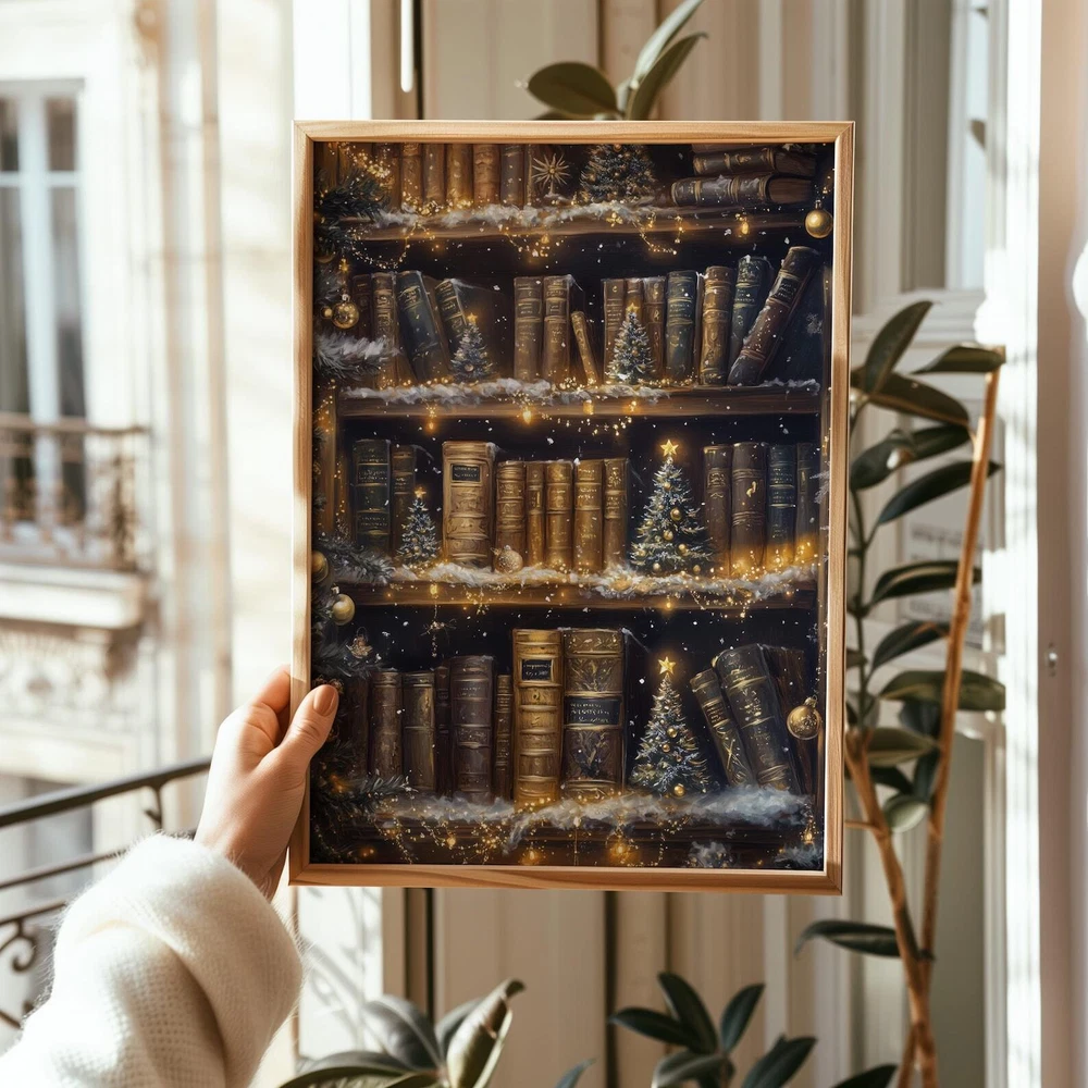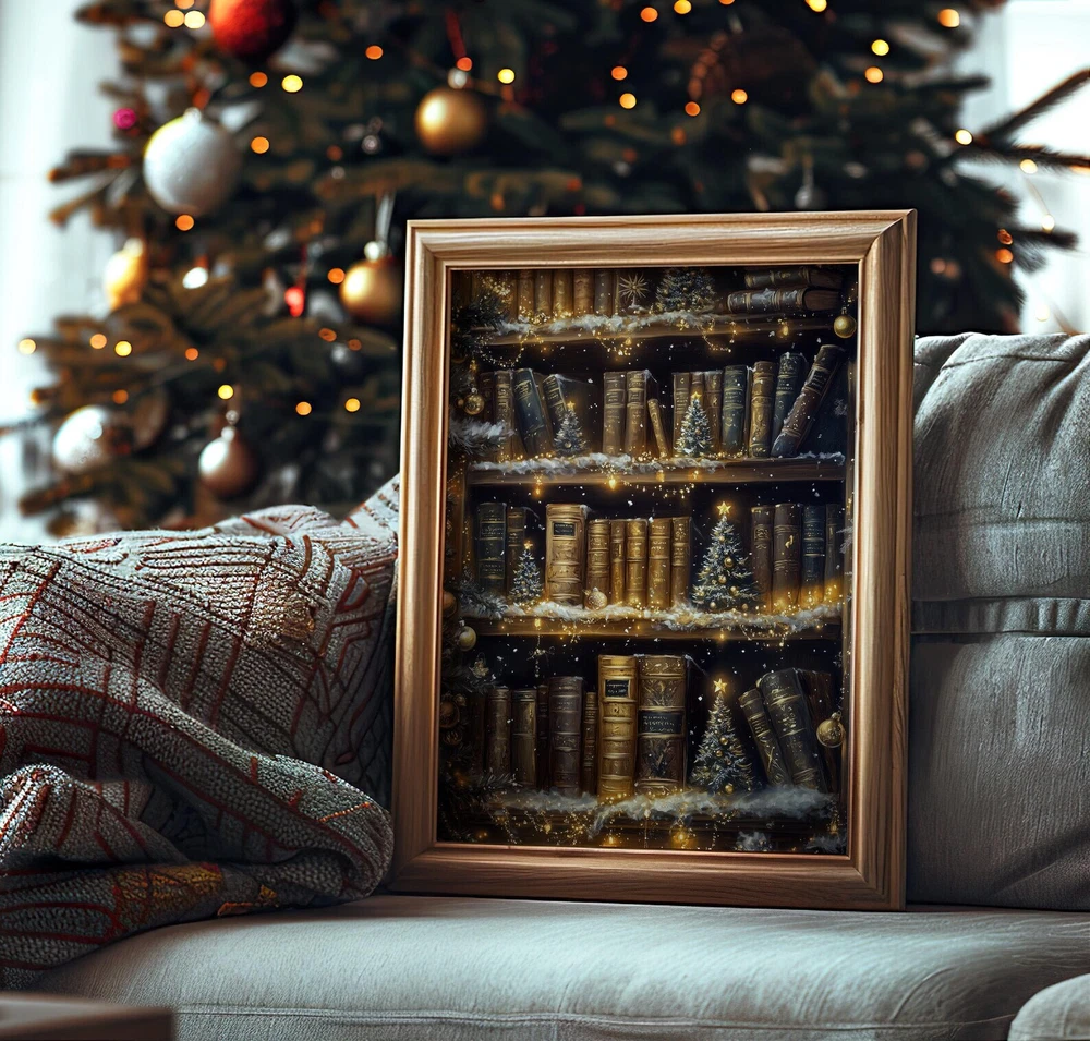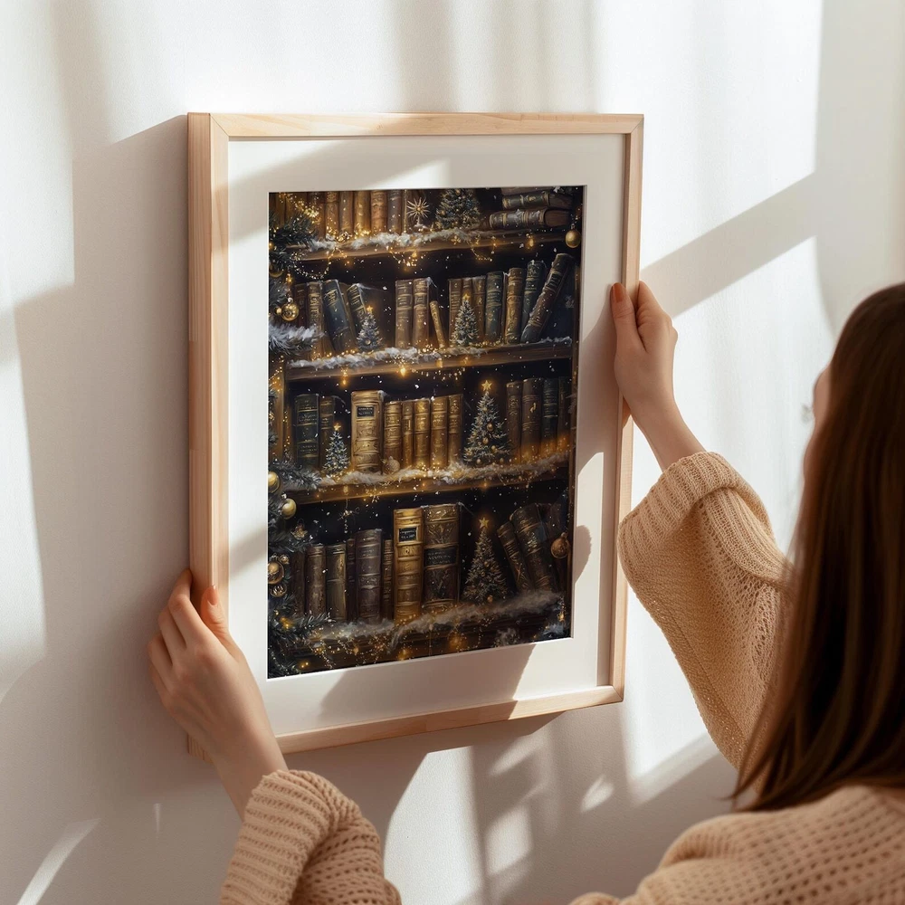 Christmas Bookshelf Art Print Reading Nook Christmas Decor Book Lover Holiday Wall Art Festive Printable For Home Library Material: Premium luster photo paper Print type: Inkjet printing One side printed + The finish provides the highest possible resolution and color saturation + Lasts up to 200 years in color and 400 years in black-and-white + Printed on high-quality resin-coated photo base paper medium + Posters can be hung with double-sided tape, tacks, or framed + Hand washing with a gentle cry cloth is recommended for extended durability I will hand select the best choice of paper for your chosen design to ensure top quality results for a beautiful, bright and luxurious print. All prints are sealed in cellophane slips for protection during transportation, and are shipped in a protective cardboard envelope.