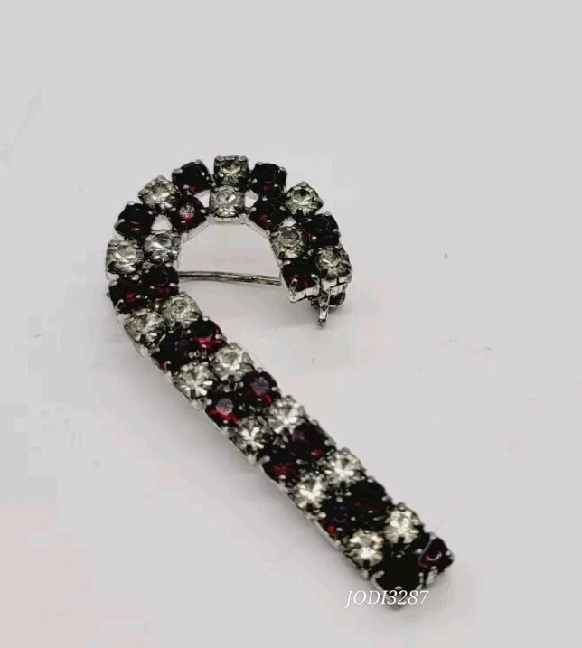 Customized:NoType:BroochShape:Candy CaneMaterial:CrystalMain Stone Shape:RoundItem Length:1.5 inBrand:Christmas StoreSigned:NoCountry of Origin:UnknownColor:Red white SilverPersonalize:NoMain Stone Color:Red WhiteBase Metal:UnknownOccasion:ChristmasTheme:Fashion & Costumes, Food & Drink, ChristmasJewelry Department:FashionAntique:NoMain Stone Creation:UnknownDepartment:WomenCountry/Region of Manufacture:UnknownMetal:UnknownMain Stone:CrystalVintage:YesHandmade:No