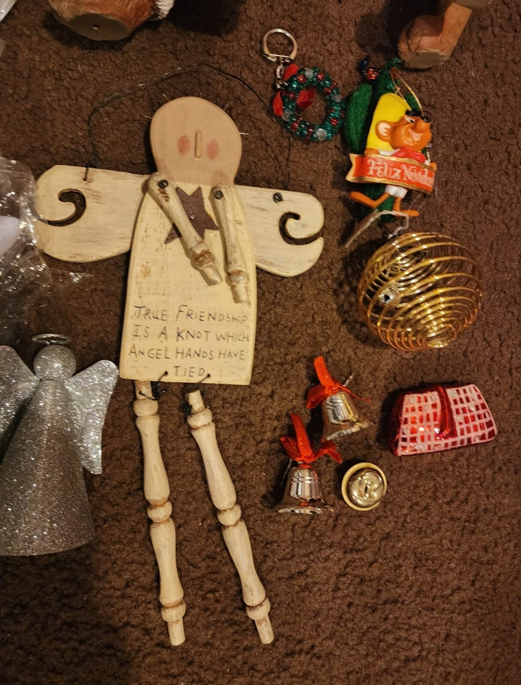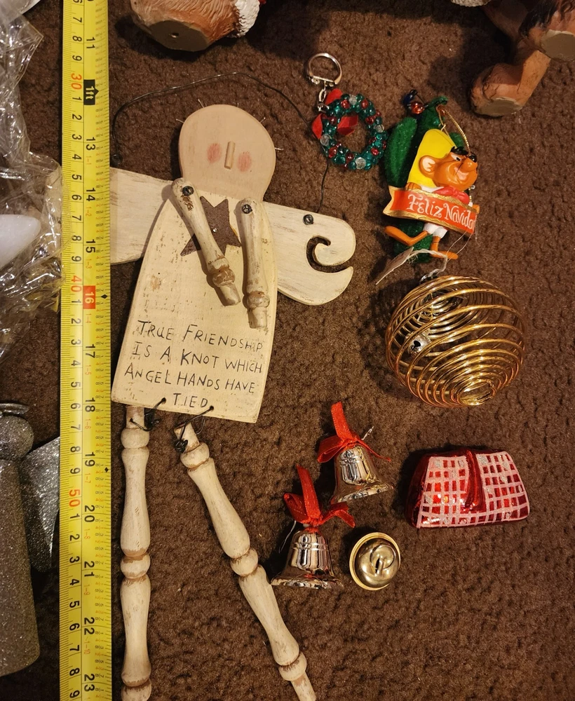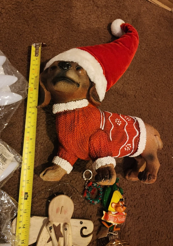 Pre Owned. Like New Condition. See Pics. Includes: 3 Set of Large Bulb Color X-mas Lights (New) 3 Sets of White Headress Lights (New) 1 Winter Wonder Lane Dachshund Dog Statue With Santa Outifit 10x12" (1 Nail on Paw Broke Off) 1 Wood Angel 2 Mini Silver Bells 1 Christmas Reef Keychain 1 Silver Glitter Angel 1 Speedy Gonzales Looney Tunes Ornament 1 Fancy Feast Cat Ornament 1996 1 Red Purse Fragile Ornament 1 Gold Bell Fragile Ornament 1 Small Jingle Bell 1 Springy Bulb With Bell Inside Ornament