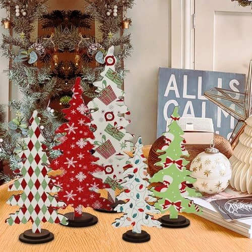 30 Days Return Policy Fast Delivery Trusted seller Christmas Decorations - 5PCS Wooden Christmas Tree Tabletop Decor Sign - Rustic Decorative Freestanding Christmas Tree Centerpiece for Home Shelf Mantel Product Description Enchanting Christmas Scenes -- Transform your space into a joyful wonderland with our wooden Christmas trees which can be put together as a set or divide up during the fun holiday. Exquisite Craftsmanship -- The pack includes 5 intricately designed Christmas classic-style wooden trees in 4 sizes. Slotted base allows the trees to stand securely which makes them easy to store away or future use. Premium Quality -- Made of real wood material, these christmas table centerpieces stand out with exceptional creativity, vibrant patterns, and quality craftsmanship for a perfect seasonal look. Versatile Holiday Touch-- Elevate your holiday decor with chic Christmas centerpieces that effortlessly enhance your mantel, shelves, window ledges, tabletops, etc, or a fun stocking stuffer. Happy Holiday! -- Let the vintage Xmas accents bring a glint of warmth to festive occasions. Share the holiday spirit with family and friends as these charming decorations spread Christmas cheer throughout your home. Shipping Returns Payment Shipping Shipping is FREE to all addresses other than APO/PO boxes in the lower 48 states. All our stock ships from US-based warehouses. Shipped via USPS or UPS (depending on location and package weight) Unless stated otherwise, all orders will ship within 24-72 hours of your payment being processed. Check our feedback to see the great reviews of FAST shipping we offer. Returns As our valued customer, we will do our best to make sure the product you receive arrives to you on time and as expected. If you are not satisfied with your purchase, please contact us within 30 days of receiving your order to process a return. Payment We currently accept payment via eBay managed payments only. Once payment is cleared, we will dispatch your shipment within 1-3 business days. Please refer to the "Shipping" tab for more information regarding shipping speed to your destination.