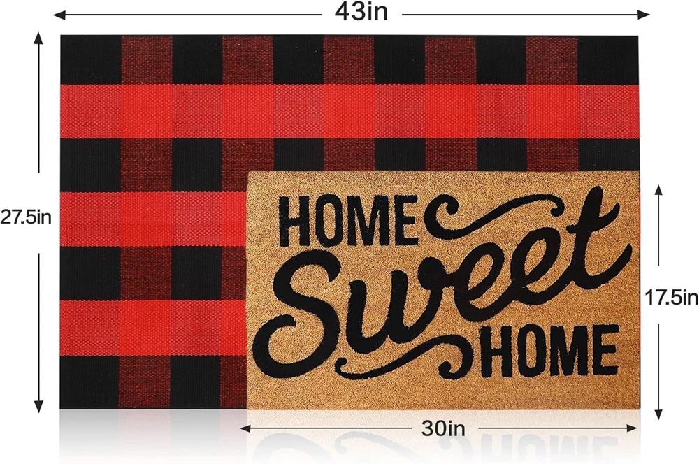 Store New Arrivals Add to Favorite View Feedback Contact Fast deliveries to the customer's home Quality customer service John Make the customers happy! Christmas Door Mat Outdoor 27.5 X 43 Inch Red and Black Plaid Rug Christmas Decor Rug Cotton Hand-Woven Layered Door Mats Washable Carpet for Front Porch, Kitchen, Farmhouse, Entryway Description Perfect Size for Layering: Our red plaid rugs thanks to the 27.5" x 43" ideal size, perfect fit 18" x 30" welcome doormat to form a double-layer front door mat. Christmas adding a different brilliance to your porch! Soft and Durable Design: Our black and red plaid rug is made of high-quality cotton and hand-woven, soft and comfortable, durable, great outdoor rug. Easy to Clean: Life is no longer messy with these check Rugs. Just vacuum or shake the buffalo plaid rug to keep it clean. Machine washable and ironable. Multipurpose Rug: Decor up your front door with a buffalo plaid door mat or double layered door mat. Also suitable for indoor and outdoor, porches, terraces, entrances, kitchens, bathrooms, etc. Create a Dream Doormat: The checked rug perfect combination with the welcome or hello doormat forms a layered effect, bing unexpected front porch decoration surprises! !! Product Description FEELING LIKE YOUR FRONT DOOR NEEDS A LITTLE BIT MORE DECORATION? Maybe all you need is our trendy buffalo plaid rug! This versatile Buffalo Plaid Rug enhances any decor style. Perfect to use for your front entryway layered with your favorite seasonal door mat as a perfect accent to welcome guests. Use it as an area rug in your foyer to greet your guests. Add the finishing touch to your front door with these classic buffalo check woven cotton rug! Suitable for different occasions you want! 110x 70cm/27.5” x 43"(L*W) Perfect to use for your front entryway layered with your favorite seasonal door mat as a perfect accent to welcome guests. 150 x 90cm/5' x 3 '(L*W) Thanks to the 3' x 5' ideal size. Perfect fit 18" x 30" hello doormat. Use it as an area rug in your foyer to greet your guests. 180 x 120cm/6' x 4' (L*W) Oversized buffalo plaid rug can cover your entire porch. Add a different brilliance to your porch! Available Color: Black White Plaid Red Black Plaid Blue White Plaid Navy Blue White Plaid Grey White Plaid Orange and White Plaid Orange and Black Plaid Reversible with patterns and designs on both sides Hand-made braided cotton fabric rug Just use a vacuum cleaner, handwash, or machine Great for all seasons and holidays. Beautiful hostess or housewarming gift! Style Buffalo Plaid Weave Type Hand Made Pattern Plaid Is Electric No Is Stain Resistant Yes Theme Farmhouse,Plaid Number of Pieces 1 Room Type Hallway Material Cotton Age Range (Description) Adult Rug Form Type Doormat Item Thickness 2 Micron Indoor/Outdoor Usage Outdoor Water Resistance Level Water Resistant Item Weight 1.9 pounds Pile Height Low Pile Construction Type Handmade Occasion Double-layered Door Mat Special Feature Washable Color Red Black Plaid Shape Rectangular Back Material Type Cotton Product Dimensions 43"L x 27.5"W Product Care Instructions Machine Wash Size 43"L x 27.5"W ABOUT US We offer the best prices around on high quality products. Our E-store includes media such as books, movies, music and games while offering electronics, toys, sporting apparel, clothing, tools, general home, garden items and more. SHIPPING We are always working hard to ensure your package arrives as soon as possible. Please understand that some factors like weather, high postal traffic, and the performance of shipping companies are outside of our control. We offer free shipping to the lower 48 states and ship within 2 business days of payment, usually sooner. We do not accept P.O. Boxes. Please provide a physical address. For shipping outside of the continental USA, we only use eBay's Global Shipping Program. The item is shipped to KY and then sent to the rest of the world. International customers are responsible for all duties and taxes. Continue to 'check out' to calculate costs for shipping the item to your country. Messages regarding eBay's Global Shipping Program MUST be directed at eBay EXCLUSIVELY. RETURNS We offer a 30-Day Return Policy on items in which you are not completely satisfied with. You have the option of a full-refund or an exchange of the item. No returns are available on items shipped outside of the USA PAYMENT We accept PayPal. CONTACT US This page content is yet to come Please ad us to your favorite seller and visit again later Thank You CUSTOMER SATISFACTION We try our very best to make sure every customer is completely satisfied. If there's a problem, message us! We're happy to help. WE ACCEPT