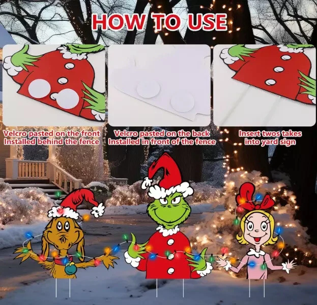 Product Description Product Description Bring Joy to Your Holidays with Christmas Fence Peekers! Transform your festive season into a magical wonderland with our Christmas Fence Peekers! This delightful package includes three charming peekers and a 9.8-foot string of lights featuring 20 waterproof LED lights , ensuring your decorations shine bright. With all necessary installation accessories included, you’ll have everything you need to create a stunning holiday display! Premium Quality for Lasting Cheer Our Christmas decorations are crafted from high-quality plastic cardboard and feature vibrant, high-definition printing that won’t fade over time. The string lights operate on 3 AA batteries (not included) and are designed with two lighting modes to suit your festive mood. Durable and weather-resistant, these decorations will brighten your holidays year after year! Hassle-Free Installation for Instant Cheer Setting up your Christmas Fence Peekers has never been easier! Choose between two simple installation methods—use the included tube or adhesive —to achieve the perfect decorative effect for your home. Enjoy a stress-free setup so you can focus on what matters most: celebrating with loved ones! Create a Magical Christmas Atmosphere Make your home the talk of the town with these eye-catching Christmas decorations! The fence peekers add a touch of whimsy and fun, enhancing your holiday spirit and creating a joyful atmosphere for gatherings. Whether for your own home or as a thoughtful gift, these decorations are sure to spread cheer to everyone! Order Your Christmas Fence Peekers Today! Don’t miss the chance to elevate your Christmas decorations this season! Order your Christmas Fence Peekers package today and fill your home with festive joy and warmth. Let the celebration begin! 🎄✨ About Us Payment Shipping Returns Contact Us Based in USA, offering high quality product Pick up orders welcome here and we also offer great discount for wholesales. We only accept PayPal payment . We process and dispatch your purchase within 2 business day after payment clearance. Please contact us if you have special requirements (combination of packaging etc.). We offer free USPS or FEDEX Package as default. If you choose express post, we charge a flat rate and we Express Post, which can be delivered in 1-3 business days, depending on your location. Please contact us first when return, exchange and refund is required. Any direct return of purchased items will not be processed. Change-of-mind return can only be accepted within 7 days after purchase. All other returns can be accepted in 30 days. We will closely examine the condition of the returned items and will not issue any refund/exchange before we make sure the items are in their original neat conditions. Before leaving us neutral or negative feedback, please contact us first. We will do everything we can to give you a satisfying solution. Please don't open case via eBay or PayPal. Please don't open any return request before contact us. We do our best to resolve any issue. Leaving negative feedback and low ratings doesn't get things solved. So please talk with us and we will not let you down. About Us Based in USA, offering high quality product Pick up orders welcome here and we also offer great discount for wholesales. Payment We only accept PayPal payment . Shipping We process and dispatch your purchase within 2 business day after payment clearance. Please contact us if you have special requirements (combination of packaging etc.). We offer free USPS or FEDEX Package as default. If you choose express post, we charge a flat rate and we Express Post, which can be delivered in 1-3 business days, depending on your location. Returns Please contact us first when return, exchange and refund is required. Any direct return of purchased items will not be processed. Change-of-mind return can only be accepted within 7 days after purchase. All other returns can be accepted in 30 days. We will closely examine the condition of the returned items and will not issue any refund/exchange before we make sure the items are in their original neat conditions. Contact Us Before leaving us neutral or negative feedback, please contact us first. We will do everything we can to give you a satisfying solution. Please don't open case via eBay or PayPal. Please don't open any return request before contact us. We do our best to resolve any issue. Leaving negative feedback and low ratings doesn't get things solved. So please talk with us and we will not let you down.