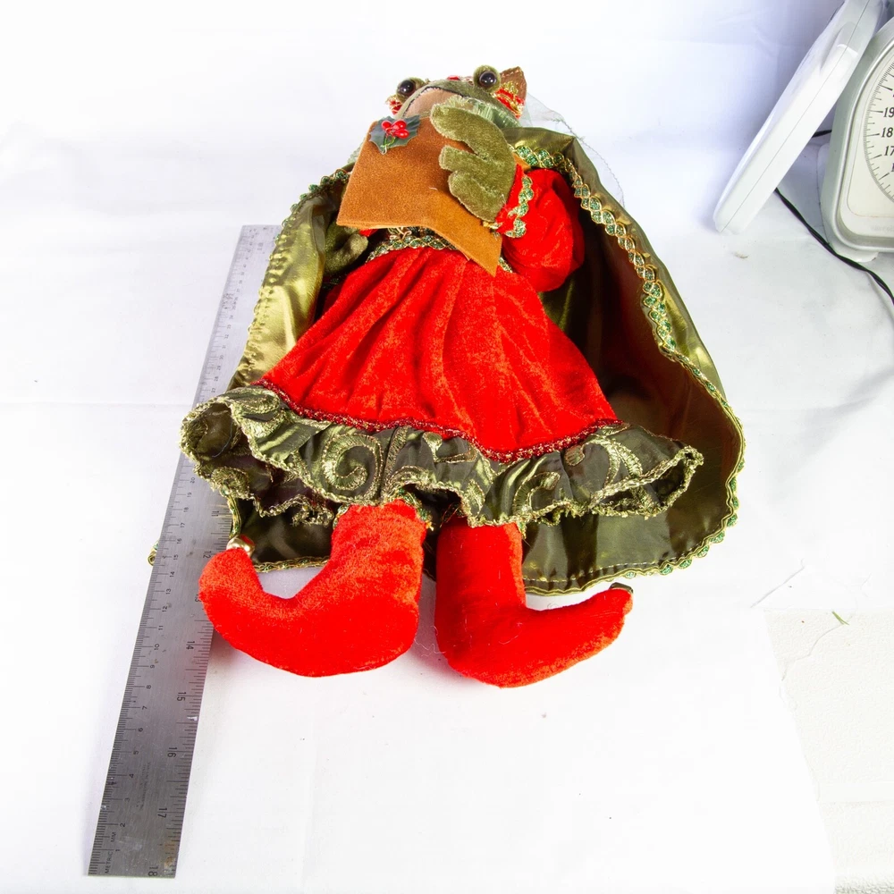 Christmas Frog Princess Red Green Plush Posable Holding Carol 14" Shelf Sitter